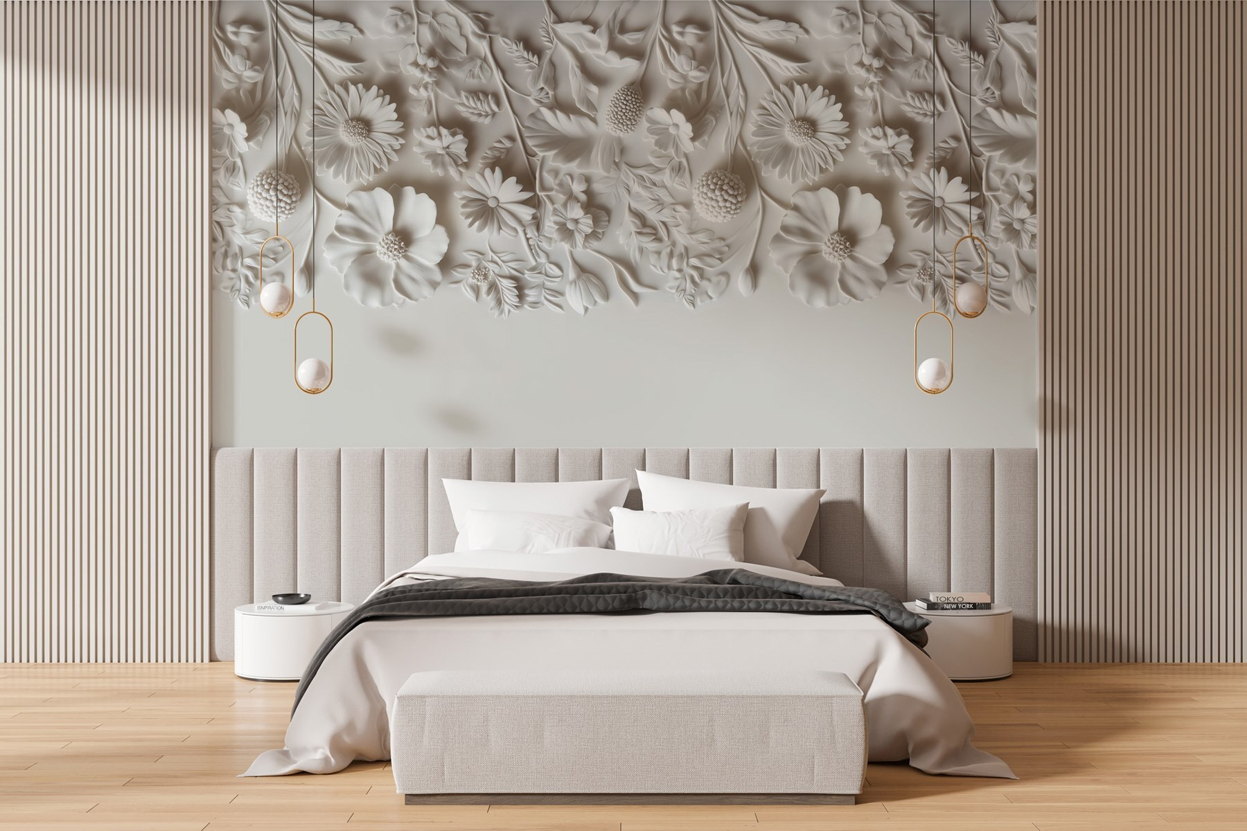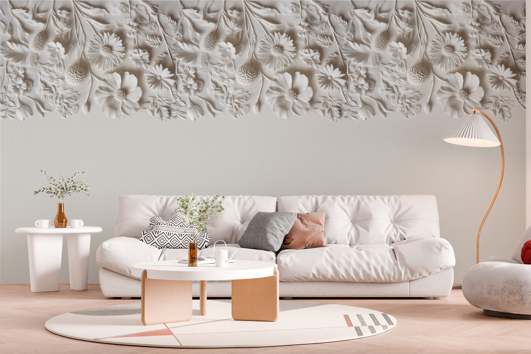Premeňte akýkoľvek priestor na pokojnú záhradu pomocou tejto rozmarnej bielej kvetinovej nástennej maľby. Predstavte si, že vstúpite do svojej izby a máte pocit, že ste obklopení jemne rozkvitnutými kvetmi, z ktorých každý rozpráva malý príbeh jari. Jemné vzory vdychujú stenám život a vyzývajú k teplu a pokoju – ideálne na útulné večery.