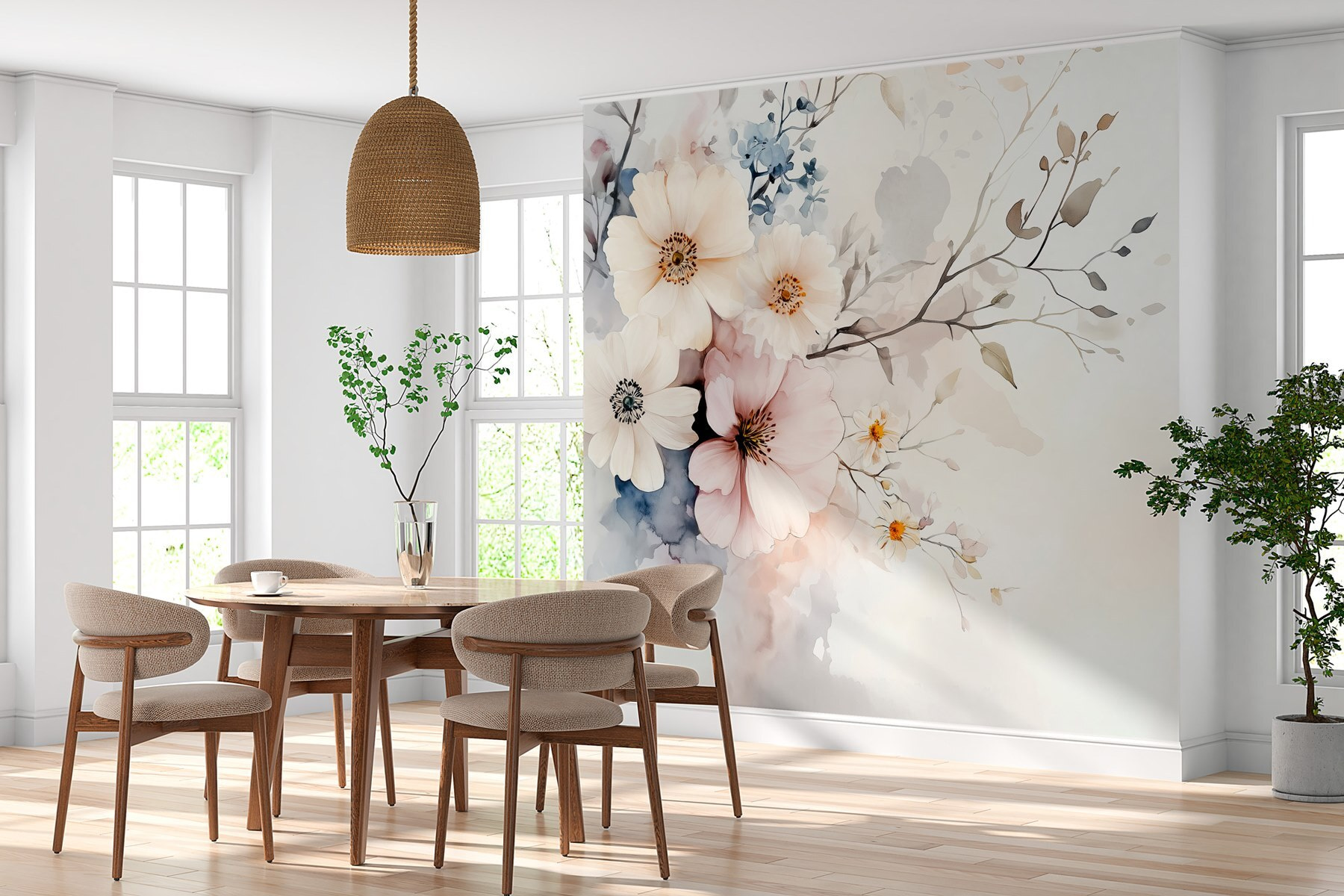Premeňte akúkoľvek miestnosť pomocou tejto nádhernej nástennej maľby so zasneným usporiadaním kvetov na jemnom bielom pozadí. Predstavte si, že sa každý deň zobudíte na ružové kvety a jemnú zeleň, ktoré pôsobia ako prechádzka pokojnou záhradou. Ideálna do obývacích izieb alebo útulných zákutí, dodáva nádych elegancie bez toho, aby bola príliš okázalá. Priatelia sa môžu počas rozhovoru dokonca zastaviť, uchvátení umeleckým dielom. Pritiahne pohľad a pozdvihne náladu – ideálne na vpustenie pozitívnych vibrácií. Kto by povedal, že kvety dokážu rozžiariť miestnosť tak ako záhradu?