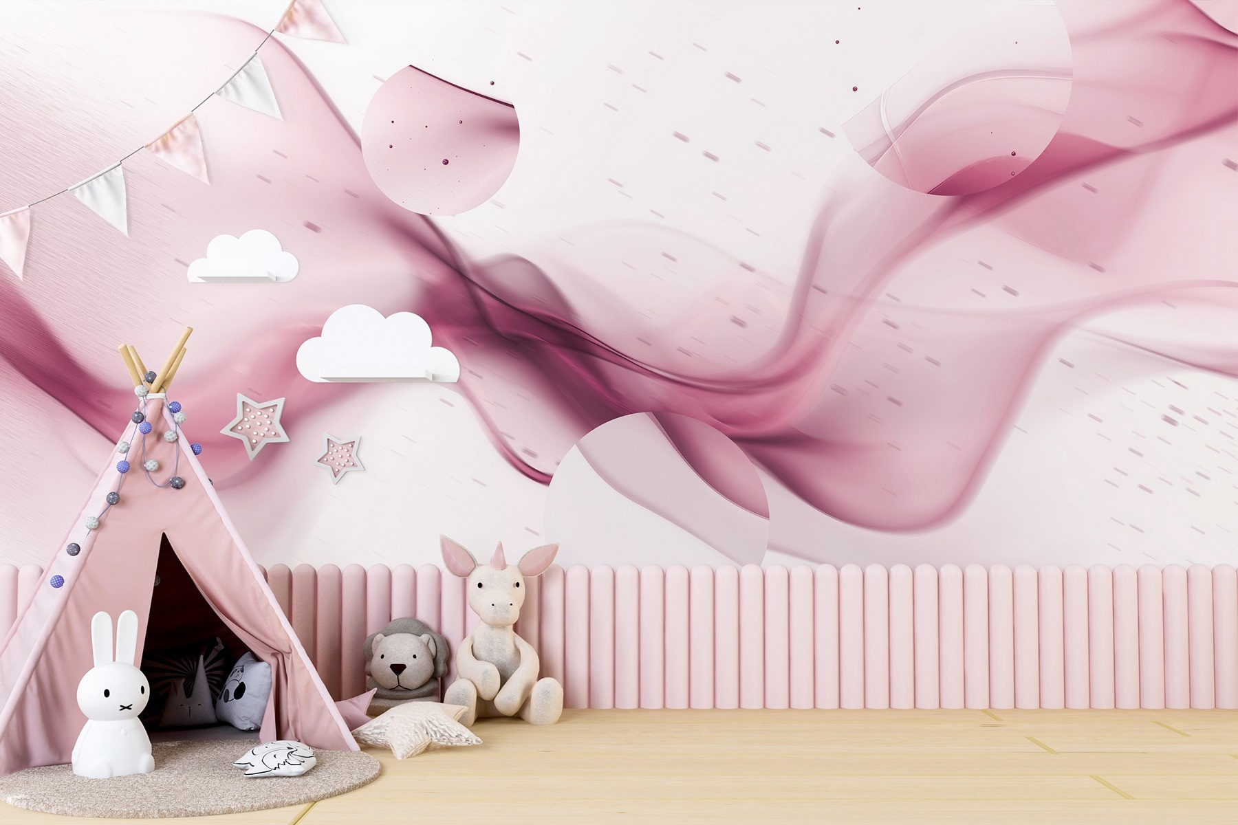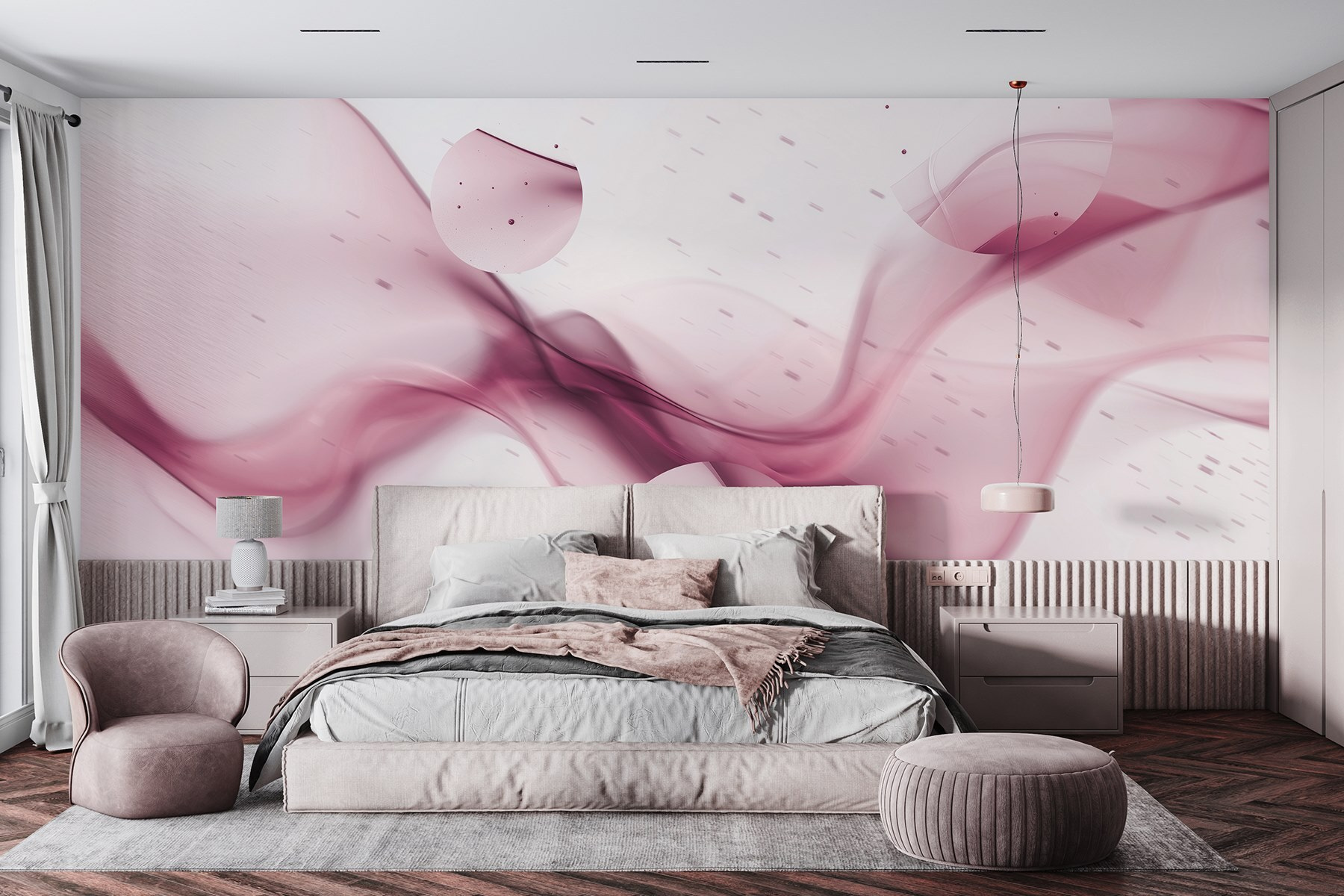 Premeňte každú miestnosť s éterickým šarmom nástennej maľby Purple Smoke. Predstavte si, že vstúpite do svojho priestoru a okamžite sa budete cítiť obklopení jemnými, splývavými odtieňmi, ktoré spolu víria ako jemná melódia. Tento dizajn nie je len dekoráciou, je to zážitok, ktorý nabáda k pokoju a tvorivosti. Predstavte si útulný kútik na čítanie, kde každý pohľad na nástennú maľbu vyvolá inšpiráciu, alebo elegantný obývací priestor, o ktorom sa bude hovoriť na vašich stretnutiach. Táto nástenná maľba je ideálna pre tých, ktorí oceňujú moderný nádych, a bez námahy spája sofistikovanosť a uvoľnenú atmosféru. Vďaka svojej zasnenej estetike je to ako mať umelecké dielo, ktoré vdýchne vášmu každodennému životu šarm. Prečo sa uspokojiť s obyčajnosťou, keď vám steny môžu našepkávať príbehy?