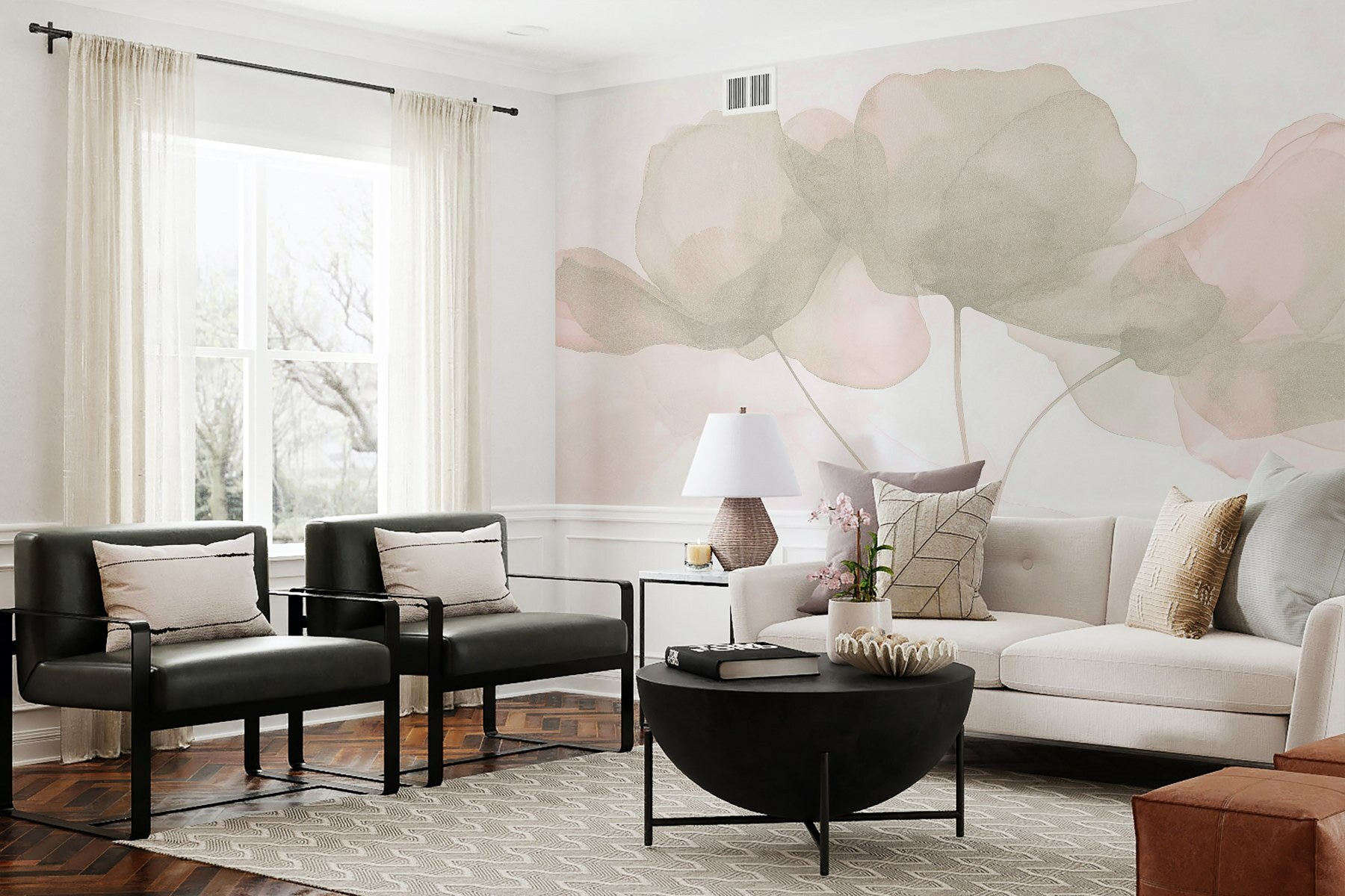 Vstúpte do pokojnej oázy s nástennou maľbou “Jemné kvety v jemných odtieňoch”. Tento zasnený dizajn zahalí vaše steny do jemných farieb, vďaka ktorým sa každá miestnosť bude cítiť ako pokojné záhradné útočisko. Predstavte si, ako popíjate rannú kávu, zatiaľ čo slnečné svetlo tancuje na týchto akvarelových okvetných lístkoch – ach, blaženosť! Je to ako mať závan jari priamo vo svojom obytnom priestore, bez potreby zalievania. Ideálne na oživenie útulného zákutia alebo dodanie elegancie chodbe. Svojimi jemnými vibráciami určite vyvolá komplimenty a možno aj trochu snívania. Život je príliš krátky na holé steny, však?