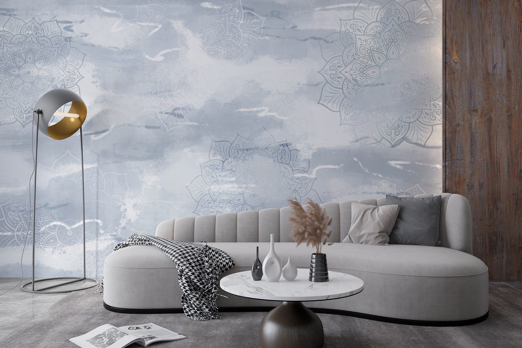 S touto očarujúcou nástennou maľbou premeníte akúkoľvek stenu na vysnívaný únik. Jej jemné sivé a biele vzory sa bez námahy začlenia do vášho priestoru a navodia pokojnú atmosféru. Predstavte si, že vstúpite do miestnosti, ktorá sa cíti ako útulný obláčik, kde každý pohľad prináša nádych pokoja. Ideálny pre útočisko mladého muža alebo útočisko dcéry, ktorý nejakým spôsobom vyvažuje elegantnosť s prístupnosťou. Priatelia sa môžu zatúlať a spýtať sa: “Odkiaľ to máš?” Vpustiť vlnu komplimentov je celkom príjemný pocit, však? Jemná tajomnosť tejto nástennej maľby našepkáva príbehy, vďaka čomu sa aj tie najjednoduchšie momenty cítia výnimočne.