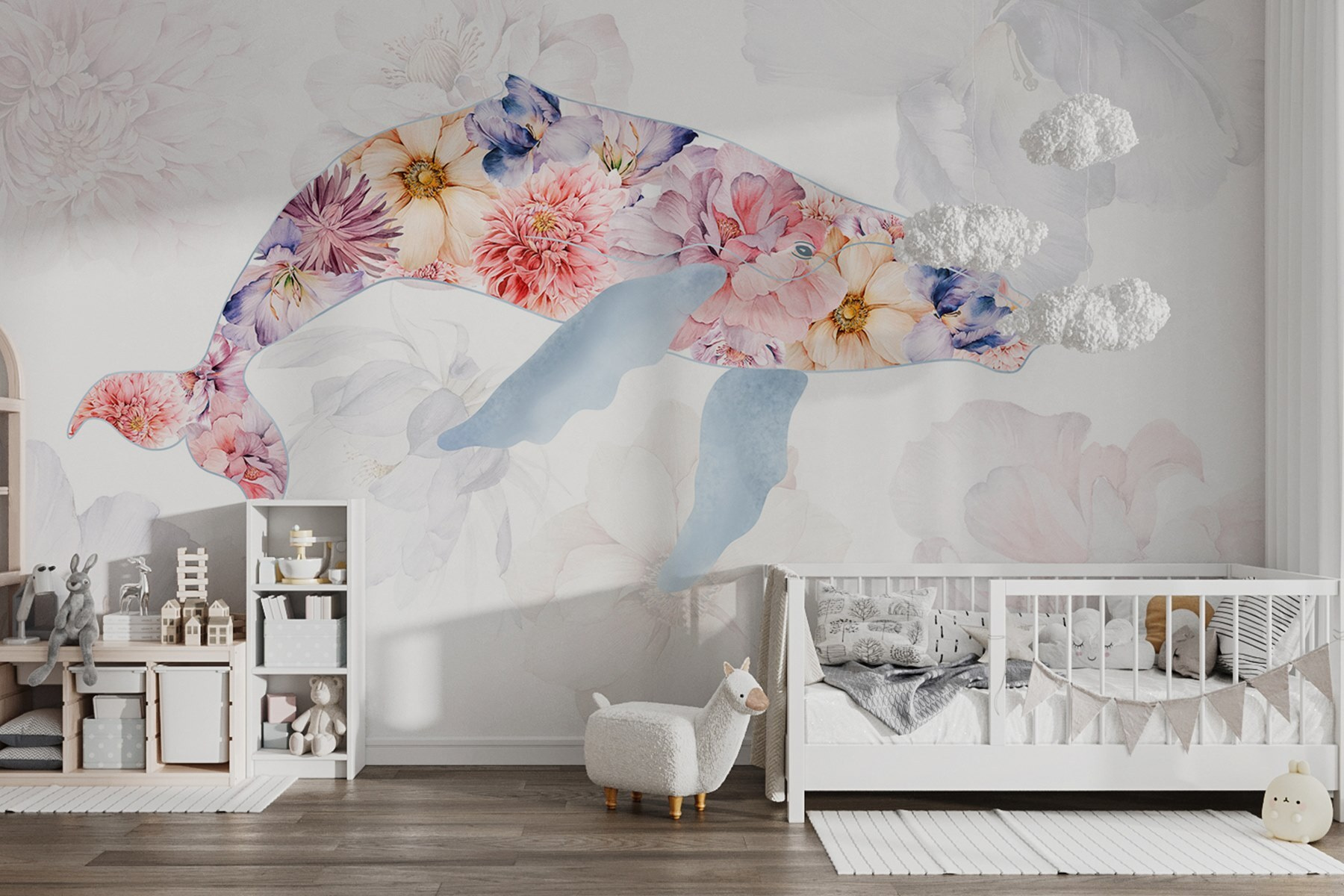 Ponorte sa do sveta, v ktorom sa stretáva čaro oceánu s kvetinovou krásou, s touto úžasnou nástennou maľbou. Predstavte si delfína, hravo postriekaného živými kvetmi, ktoré akoby tancovali po stenách. Je to ako mať tajnú záhradu pod morskými vlnami – kto by povedal, že morské panny majú taký dobrý vkus na dekorácie? Táto nástenná maľba navodzuje pocit pokoja, vďaka čomu sa každá miestnosť bude cítiť ako útulné prímorské útočisko. Predstavte si, že si počas daždivého dňa lebedíte, popíjate čaj a pri pohľade na tento umelecký kúsok cítite, ako vás obmývajú jemné vlny. Nie je to len nástenná maľba, je to mini dovolenka pre vaše steny!