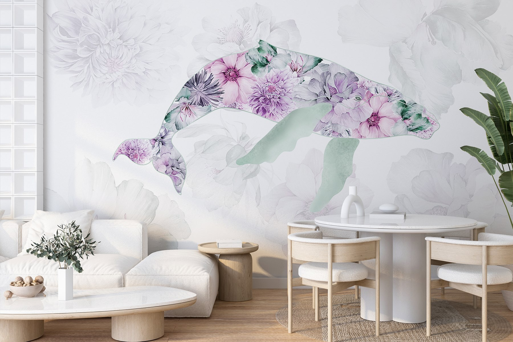Predstavte si delfína, ktorý sa ladne plaví medzi živými morskými kvetmi priamo na vašej stene. Táto nástenná maľba “Delfín s kvetmi” vnesie do každého priestoru štipku rozmarnosti a pokoja. Je to ako rozhovor s priateľom, ktorý vie, ako vám rozjasniť deň, a zároveň vám pripomína oceánsky vánok a slnečné prechádzky. Perfektne sa hodí do útulného zákutia alebo živého jedálenského kúta, vyvoláva rozhovory a maľuje úsmevy. Jemné farby spolu plynú v rozkošnom tanci a pozývajú vás ponoriť sa do malého oceánskeho kúzla zakaždým, keď prechádzate okolo. Kto by sa nechcel nechať privítať takouto veselou spoločnosťou?