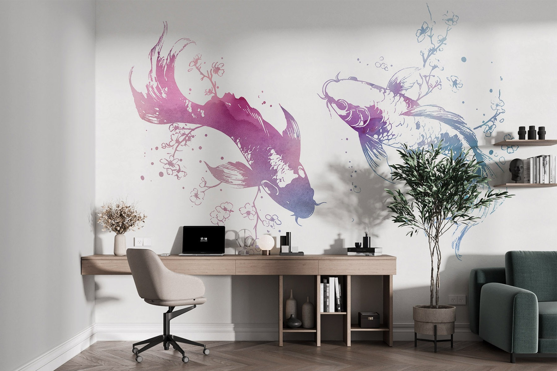 Premeňte svoj priestor pomocou tejto očarujúcej nástennej maľby s dvoma elegantnými rybami plávajúcimi uprostred akvarelových špliechancov. Je to ako preniesť si kúsok prímorskej krajiny priamo do vášho domova, bez piesku v topánkach. Mäkké odtiene tancujú po celej nástennej maľbe a navodzujú pocit pokoja, ktorý ľahko rozžiari každú miestnosť. Predstavte si, že sedíte v útulnom kúte, popíjate čaj a tieto ladné rybky akoby sa kĺzali okolo – možno dokonca zabudnete, že ste v interiéri. Je to očarujúci dotyk, ktorý našepkáva sofistikovanosť a pokoj, ideálny na vytvorenie pokojnej atmosféry. Nebuďte prekvapení, ak sa s rybičkami začnete rozprávať; možno vám budú mať čo povedať!