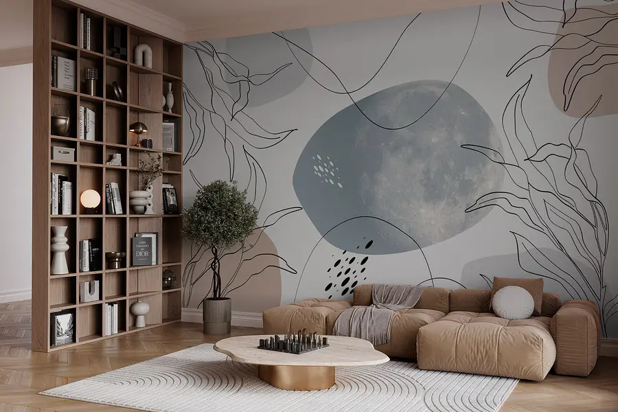 Premeňte svoj priestor pomocou tejto podmanivej nástennej maľby, kde sa mesiac stretáva s tancom jemných rastlín na jemnom bielom pozadí. Je to ako mať kúsok prírody a kvapku kúzla priamo u vás doma. Predstavte si, že relaxujete pod jemnou mesačnou žiarou, obklopení pokojom sviežej zelene – je ideálna na vytvorenie útulného čitateľského kútika alebo pokojného miesta vo vašej obývačke.