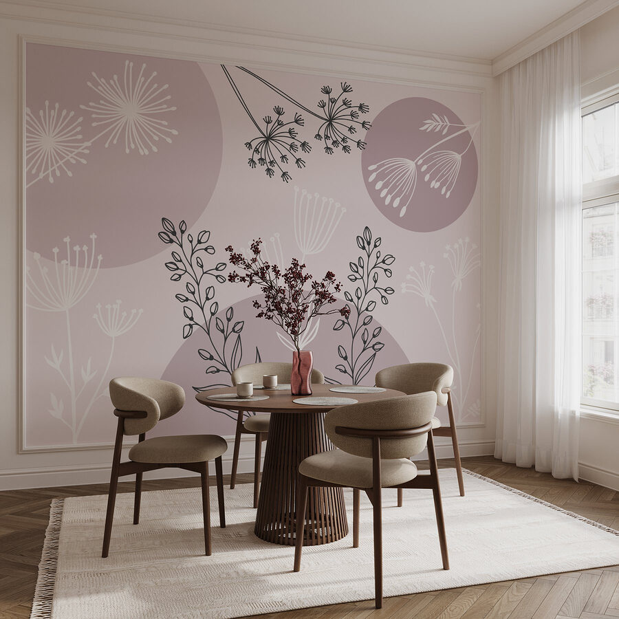 Premeňte akúkoľvek miestnosť na pokojnú oázu pomocou tejto očarujúcej nástennej maľby s jemnými kvetmi a rastlinami. Jemný akvarelový štýl tancuje zmesou jemných odtieňov a pôvabných línií, vďaka čomu budete mať pocit, že sa na vašich stenách natrvalo usídlila jar. Predstavte si, ako popíjate šálku čaju obklopení týmto veselým kvetom, ktorý prináša kúsok prírody do interiéru. Je ideálny pre tých, ktorí chcú, aby ich priestor pôsobil ľahko a sviežo. Navyše je to okamžitý začiatok konverzácie – kto by sa nechcel rozprávať o krásnej záhrade priamo vo svojej obývačke? Prijmite túto sviežu botanickú atmosféru a nechajte svoju stenu hovoriť!