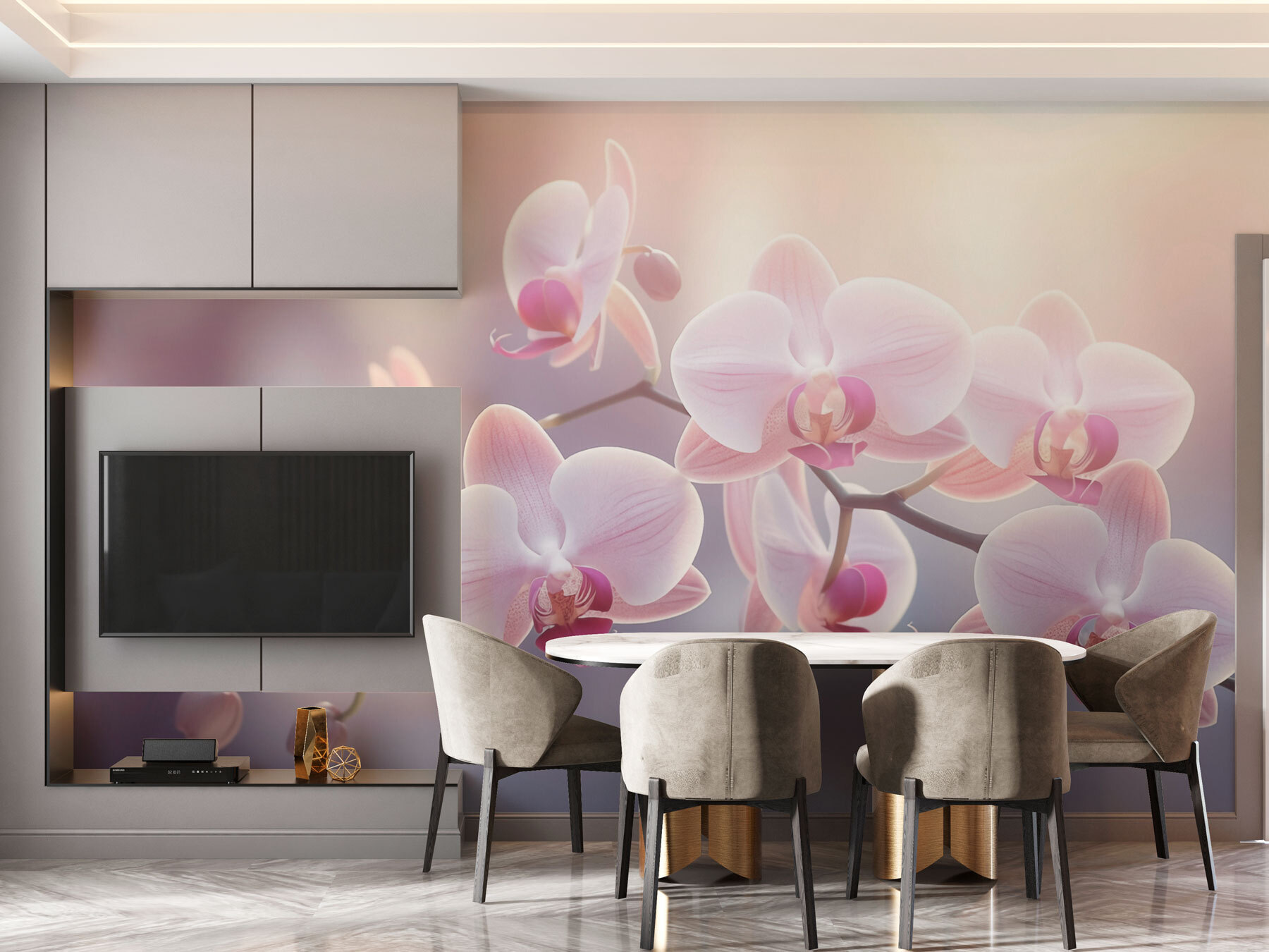 Premeňte svoj priestor pomocou nástennej maľby “Jemné kvety v jemnom svetle”, ktorá je očarujúcim výbuchom kvetinovej krásy, vďaka ktorej budú hostia obdivovať nielen vaše občerstvenie, ale aj vaše steny. Predstavte si, že vstúpite do miestnosti, ktorá pripomína pokojnú jarnú záhradu, kde jemné odtiene kvitnúcich orchideí vytvárajú upokojujúcu atmosféru. Predstavte si lenivé popoludnia ponorené do jemného svetla, so šálkou čaju v ruke, zatiaľ čo tieto krásne kvety šepkajú sladké tóny. Je to ako mať útulného priateľa priamo na stene, ktorý vám pripomína, že malé životné okamihy si zaslúžia oslavu. Táto nástenná maľba, ktorá je ideálna na oživenie akéhokoľvek zákutia, je nádherným doplnkom pre každého, kto hľadá vo svojom živote trochu kvetinovej jemnosti. Tak smelo do toho, prineste si domov toto kvetinové objatie!