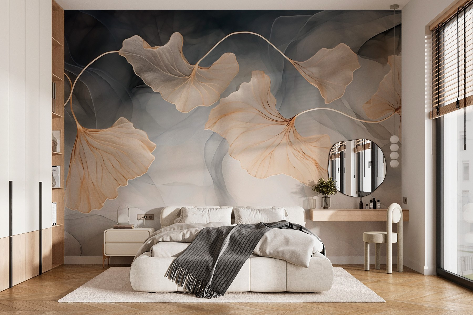 Premeňte svoj priestor pomocou nástennej maľby “Jemné lístie v jemných odtieňoch”, kde jemné lístie tancuje na pozadí upokojujúcich farieb. Predstavte si, že vstúpite do miestnosti, ktorá pripomína pokojný les, a jemná paleta hneď upokojí vašu myseľ. Tieto listy s krásnymi krivkami sa takmer zdajú, akoby sa kolísali v ľahkom vánku. Táto nástenná maľba, ktorá je ideálna pre útulný čitateľský kútik alebo tiché zákutie, vás vyzýva, aby ste sa nadýchli a oddýchli si. Len si to predstavte – popíjanie čaju, obklopenie milosťou prírody a pocit, že svet je o niečo milší. Jednoduchý dotyk, ktorý našepkáva eleganciu!