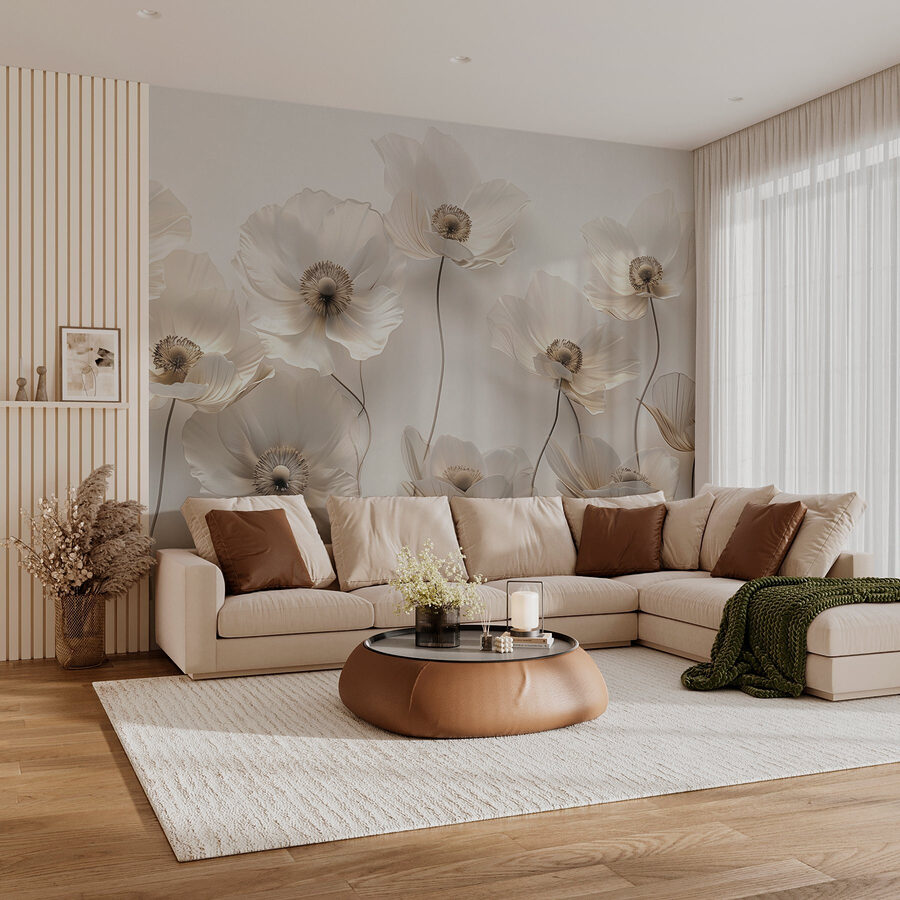 Rozžiarte každú miestnosť touto úžasnou fototapetou s krásnou skupinou bielych kvetov, ktorá pôsobí ako jemný jarný vánok. Predstavte si, že vstúpite do svojho priestoru a privíta vás ich jemná elegancia, ktorá prináša pocit pokoja. Tieto kvety nielen pekne sedia, ale vdýchnu život nudnej stene a premenia ju na útulný kútik prírody. Perfektne sa hodia do obývačky alebo spálne, kde budú nielen pútať pozornosť, ale aj pozývať na rozhovory. Kto by sa nechcel rozprávať o týchto krásnych kvetoch? Je to ako mať záhradu v interiéri, bez zalievania. Dodajte tejto nástennej maľbe nádych rozmarnosti a šarmu a nechajte sa unášať kvetinovým kúzlom.