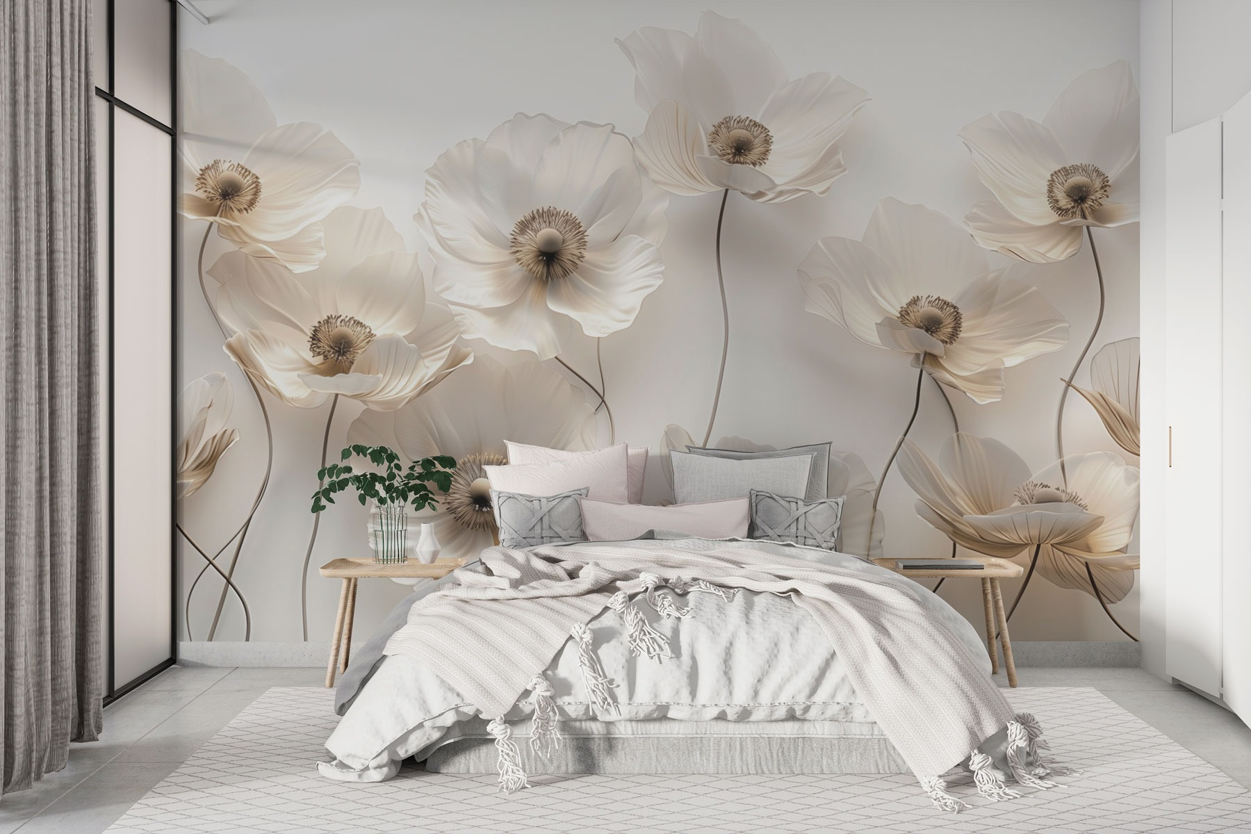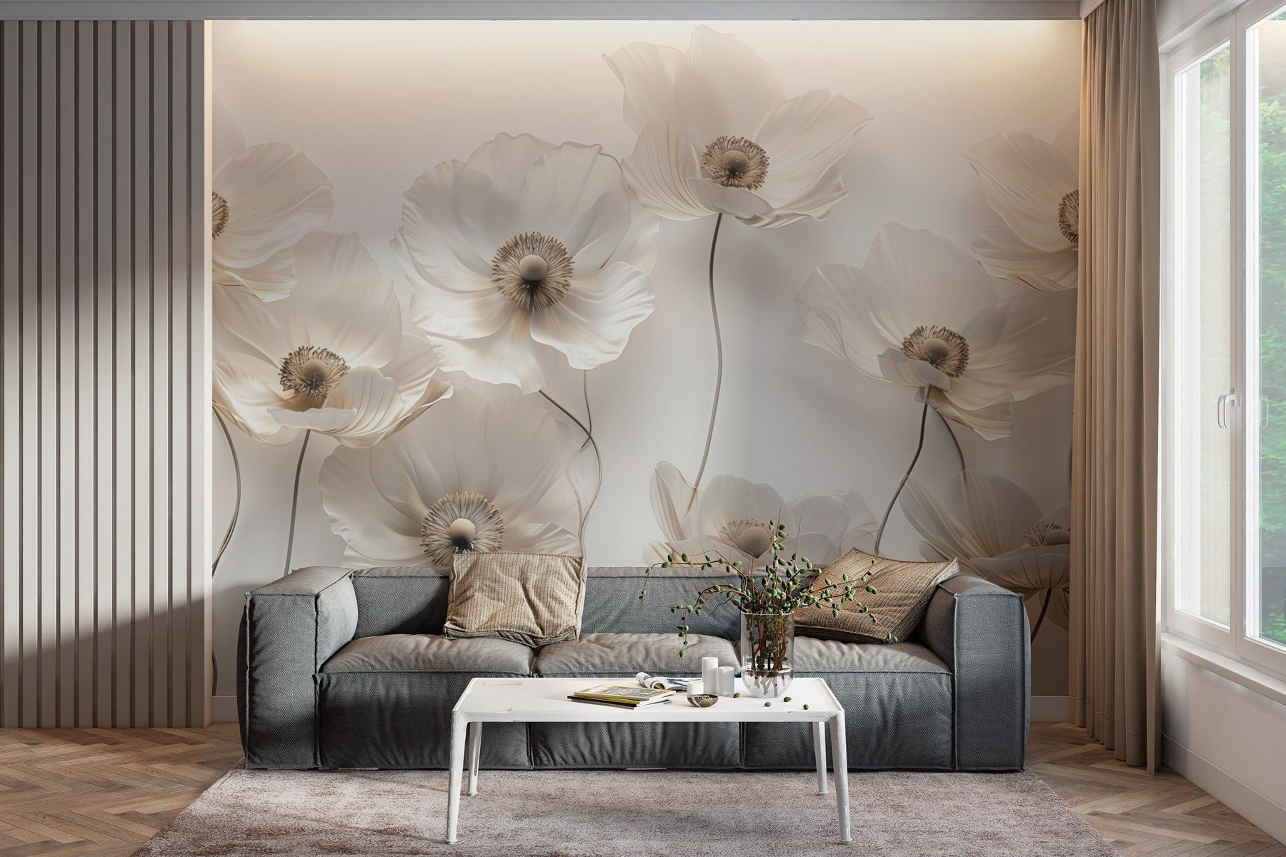Rozžiarte každú miestnosť touto úžasnou fototapetou s krásnou skupinou bielych kvetov, ktorá pôsobí ako jemný jarný vánok. Predstavte si, že vstúpite do svojho priestoru a privíta vás ich jemná elegancia, ktorá prináša pocit pokoja. Tieto kvety nielen pekne sedia, ale vdýchnu život nudnej stene a premenia ju na útulný kútik prírody. Perfektne sa hodia do obývačky alebo spálne, kde budú nielen pútať pozornosť, ale aj pozývať na rozhovory. Kto by sa nechcel rozprávať o týchto krásnych kvetoch? Je to ako mať záhradu v interiéri, bez zalievania. Dodajte tejto nástennej maľbe nádych rozmarnosti a šarmu a nechajte sa unášať kvetinovým kúzlom.