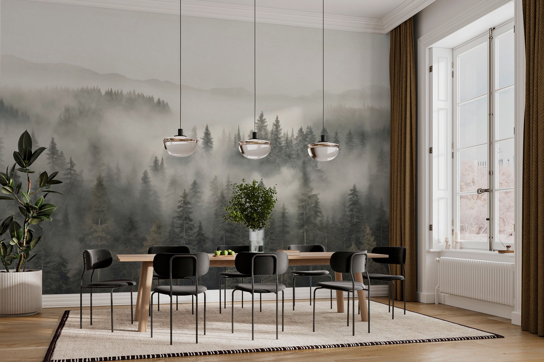 Premeňte svoj priestor na zasnený únik s touto úžasnou nástennou maľbou lesa zahaleného v hmle a horách. Je to ako vstúpiť do pokojného lesa, kde sa zastavil čas. Predstavte si, ako popíjate rannú kávu pri pohľade na tieto pokojné stromy a cítite, ako vás obklopuje náruč prírody. Na hmle, ktorá všetko zjemňuje, je niečo magické, však? Táto nástenná maľba je ideálna do obývacích izieb, kancelárií alebo aj do kávových kútikov a vytvára pokojnú atmosféru. Nechajte svoje steny rozprávať príbehy o ranných výletoch a šepotavom vánku, čím premeníte každú miestnosť na útulné útočisko.