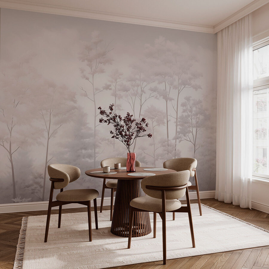 Premeňte svoj priestor vďaka pokojnému kúzlu tejto nástennej maľby zobrazujúcej skupinu stromov zahalených v jemnej hmle. Predstavte si, že pri každej prechádzke vstúpite do zasneného lesa. Jemné tóny a hmlistá atmosféra vytvárajú upokojujúcu atmosféru – ideálnu na uvoľnenie po dlhom dni alebo na pridanie dotyku prírody do vášho domova. Je to ako mať pokojný únik priamo na stene. Navyše je to skvelý podnet na konverzáciu! Priatelia budú básniť o vašej jedinečnej voľbe dekorácie. Kto by povedal, že hŕba stromov môže byť taká podmanivá?