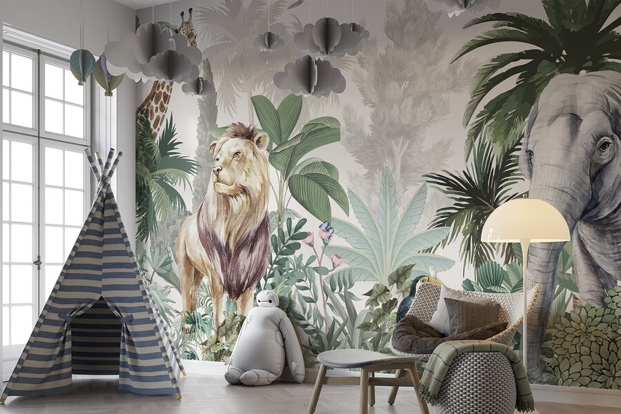 Premeňte svoj priestor na zázračnú krajinu divokej prírody s touto úžasnou nástennou maľbou s majestátnym levom, hravými tukanmi a nežným slonom uprostred sviežej zelene. Je to ako preniesť si kúsok džungle priamo do svojho domova. Predstavte si, že sa pohodlne usadíte a necháte sa unášať žiarivými farbami a pocítite pokoj, keď sa na vašich stenách rozhostí príroda. Táto nástenná maľba, ktorá je ideálna do každej miestnosti túžiacej po troche dobrodružstva, vás pozýva na oddych a objavovanie. Kto by povedal, že zdobenie môže pripomínať mini safari? Každý pohľad môže vyvolať radosť a premeniť obyčajné dni na neobyčajné chvíle. Je to druh nástenného umenia, ktoré vám vyčarí úsmev a prinesie divočinu priamo do vášho útulného kútika.