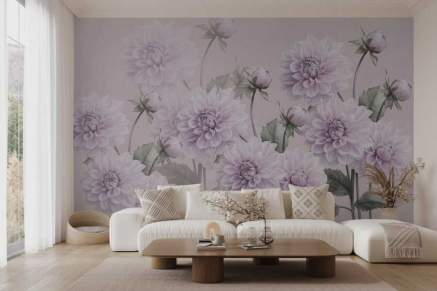 Premeňte každú miestnosť pomocou tejto úžasnej nástennej maľby s nádherným zhlukom fialových kvetov. Predstavte si, že vstúpite do priestoru, ktorý pripomína záhradu, kde každý pohľad na tieto kvety prináša pocit pokoja. Je to ako preniesť kúsok prírody do interiéru, bez zalievania. Tieto nádherné kvety stoja vysoko a bez námahy rozžiaria vaše steny. Ideálne sa hodia do útulnej obývačky alebo pokojného kúta v spálni a možno vám každé ráno vyčaria úsmev na tvári. Je to jednoduchý spôsob, ako si vytvoriť vlastný malý raj bez bzučania včiel.