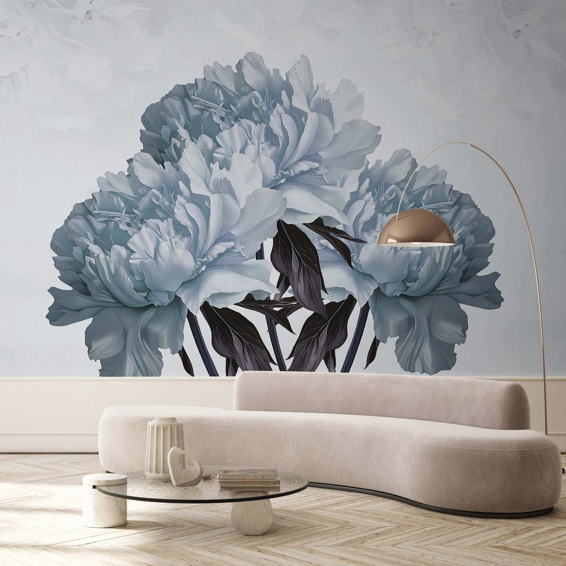 Premeňte obyčajnú stenu na zasnený únik s fototapetou “Jemné kvety v jemných odtieňoch”. Predstavte si, že pri každom vstupe do miestnosti vstúpite do pokojnej záhrady. Nežné pivonky v jemných modrých a bielych farbách šepkajú pokoj a pohodu ako príjemné objatie z obláčika. Je to dokonalé pozadie na popíjanie rannej kávy alebo na organizovanie večerných rozhovorov. A buďme úprimní – kto by nechcel zapôsobiť na hostí umením, ktoré prakticky dýcha eleganciou? Nie je to len dekorácia, je to aj zlepšovák nálady. Navyše sa vám môže stať, že budete snívať o lenivých popoludniach, keď sa budete pozerať na tieto nádherné kvety.