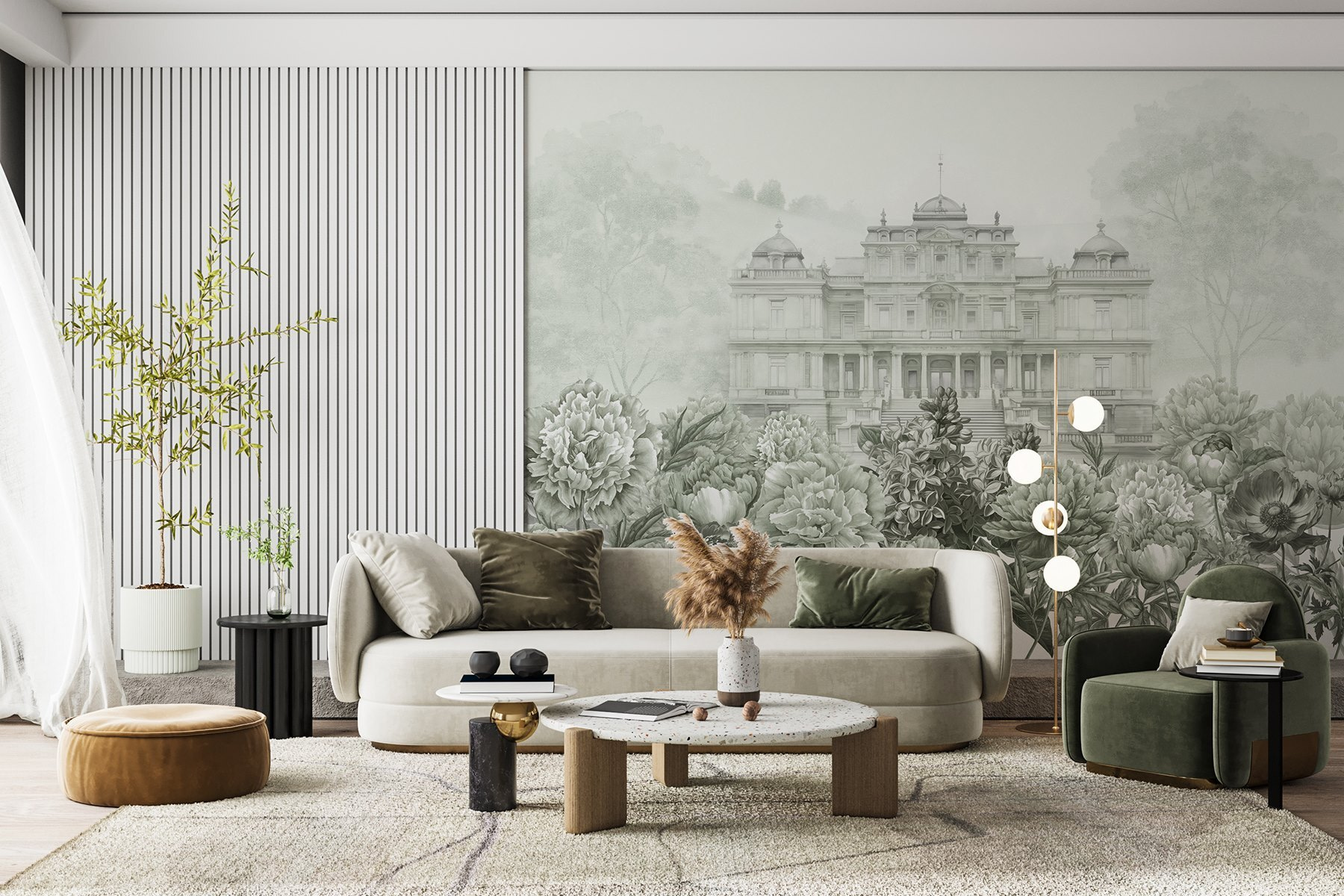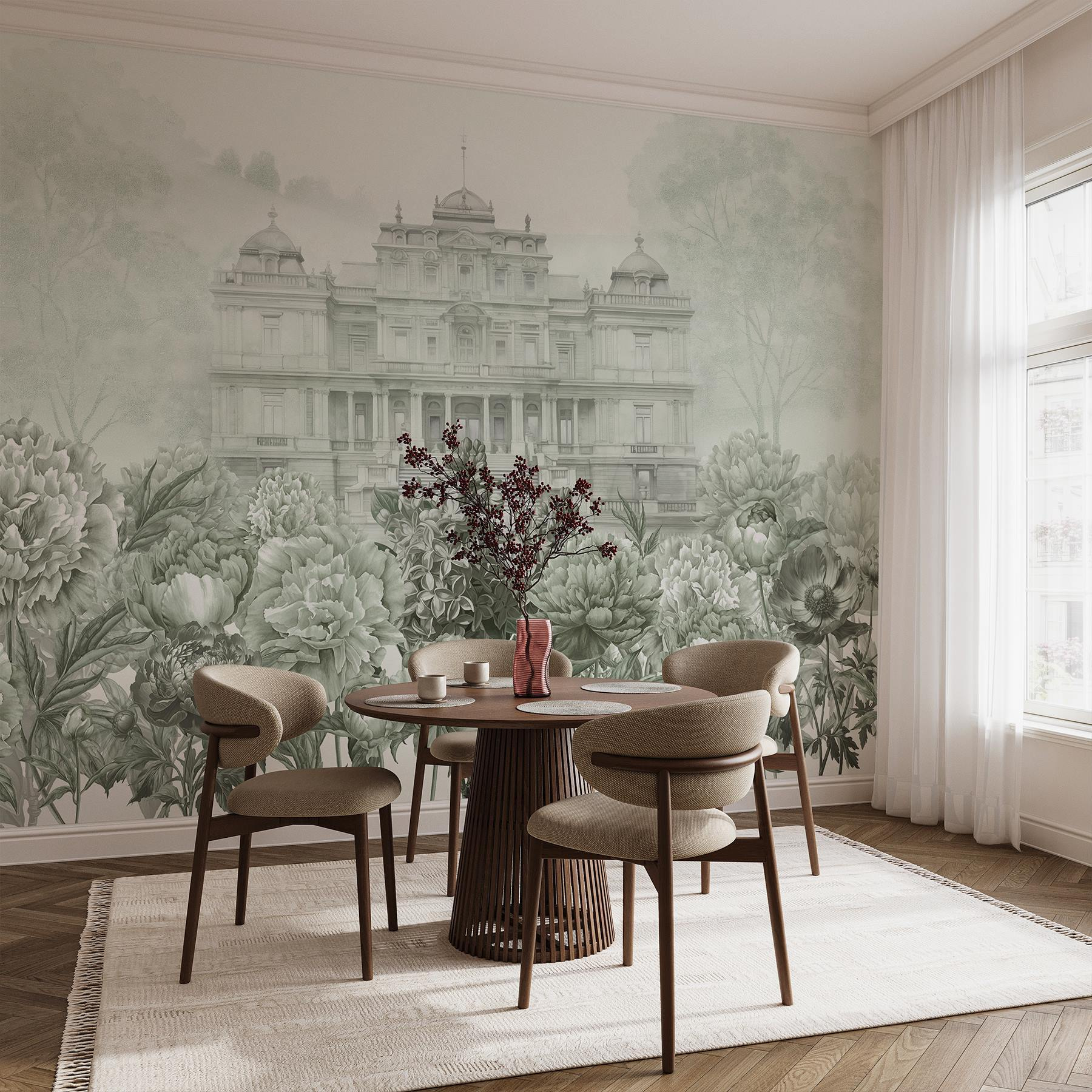 Premeňte akýkoľvek priestor pomocou tejto úžasnej nástennej maľby s veľkolepou bielou budovou a živými kvetmi. Predstavte si, že vojdete do miestnosti a privíta vás nádherná explózia pivónií, zatiaľ čo majestátne pozadie ticho vzbudzuje pozornosť. Je to ako preniesť do interiéru kúsok pokojnej záhradnej mágie. Táto nástenná maľba je ideálna pre tých, ktorí majú radi trochu elegancie zmiešanej s čarom prírody, a dokáže naladiť upokojujúci tón alebo vyvolať radostné rozhovory. Len si predstavte priateľov, ktorí pri popíjaní čaju obdivujú detaily, alebo útulný filmový večer, pri ktorom sa cítia o niečo výnimočnejšie. Dokonalá záverečná bodka pre každý štýlovo rozkvitnutý domov.