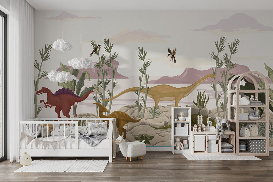 Premeňte akýkoľvek priestor pomocou tejto živej nástennej maľby so živou skupinou dinosaurov skúmajúcich púštnu krajinu. Predstavte si, že vstúpite do miestnosti, kde na stenách akoby ožili priateľskí obri, ako napríklad nežný brachiosaurus a zvedavý stegosaurus. Jemné zemité tóny a hravá zeleň vytvárajú pokojnú a zároveň vzrušujúcu atmosféru. Je to dokonalý podnet na konverzáciu – deti budú rady poukazovať na svojich obľúbencov a zároveň tajne snívať o prehistorických dobrodružstvách. Táto nástenná maľba vás unesie do sveta, kde sa darí dinosaurom, či už v herni alebo v útulnom kútiku. Kto by nechcel mať vo svojom priestore kúsok dinosaurieho kúzla?