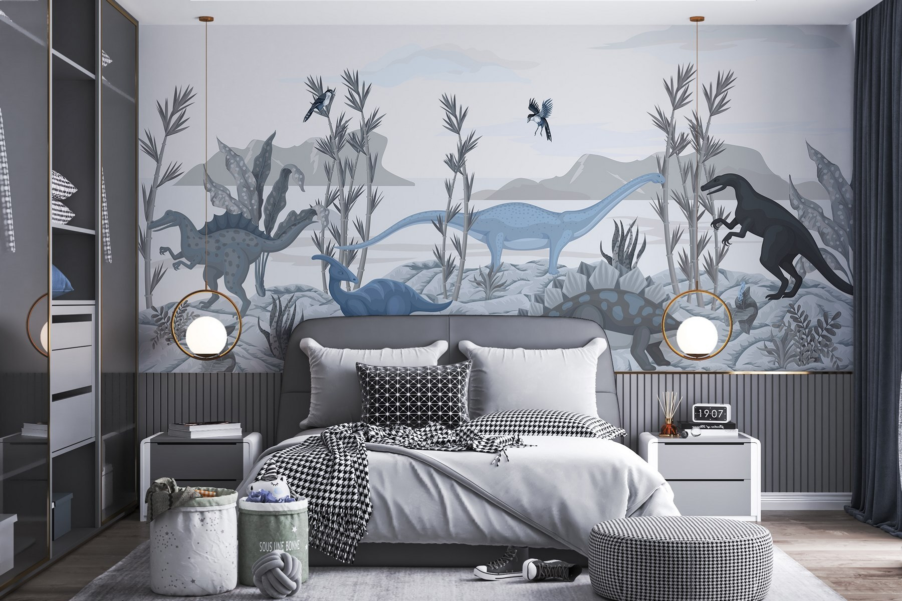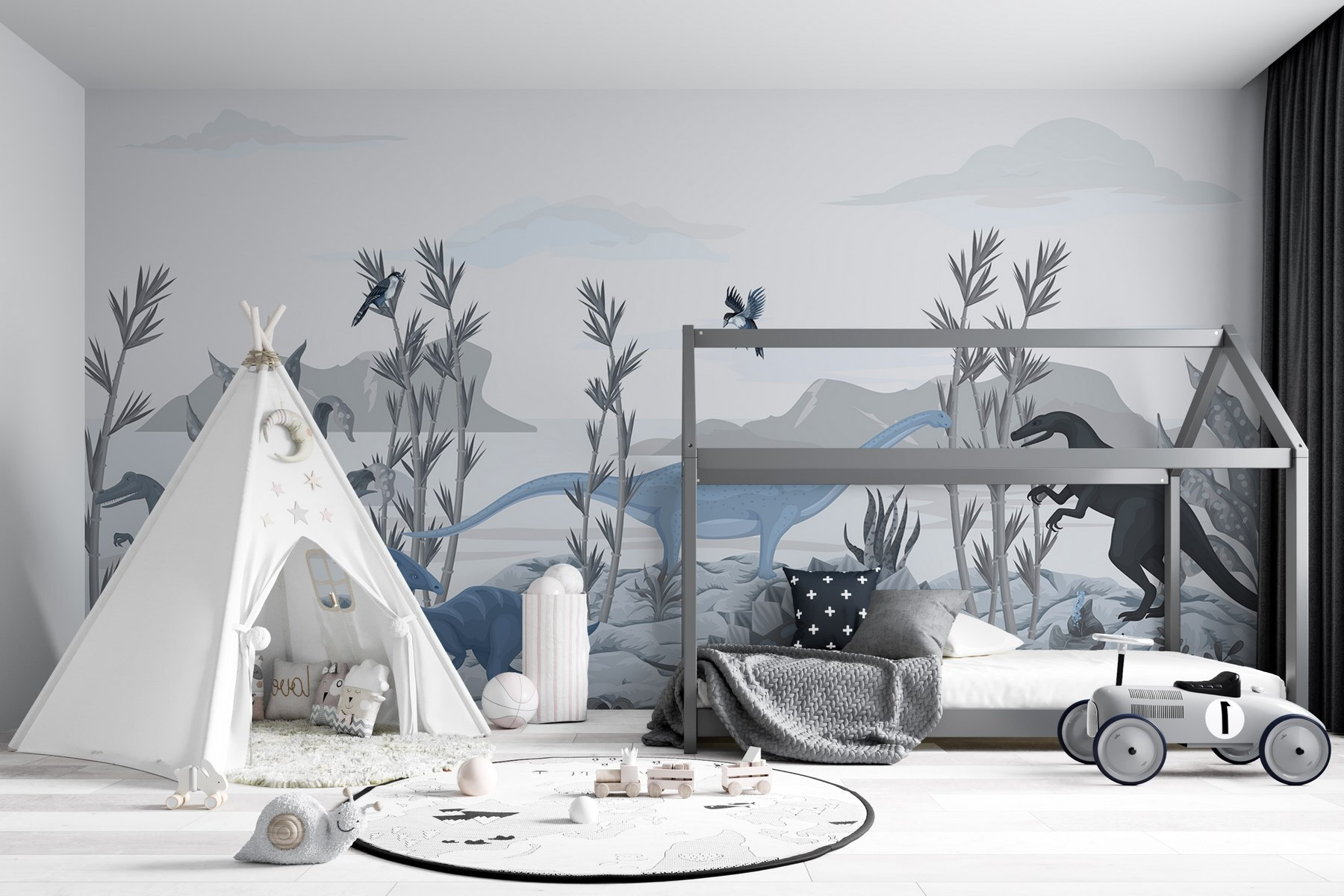 Premeňte detský priestor na prehistorické dobrodružstvo s touto podmanivou nástennou maľbou dinosaura. Predstavte si, že bystré oči malých detí objavujú svet, v ktorom sa pohybujú obri, a ich fantázia sa rozvíja medzi nežnými brontosaurami a divokými T. rexmi. Upokojujúce farby a zložité detaily krajiny vytvárajú pokojnú atmosféru, ktorá je ideálna na denné snívanie alebo rozprávanie. Zaveste ho do detskej izby alebo spálne a sledujte, ako vzbudzuje zvedavosť a údiv. Nie je to len nástenná maľba – je to pozvánka na objavovanie sveta, v ktorom sa každý deň môže cítiť o niečo dobrodružnejšie. Deti možno dokonca začnú snívať o eskapádach na tému dinosaurov!