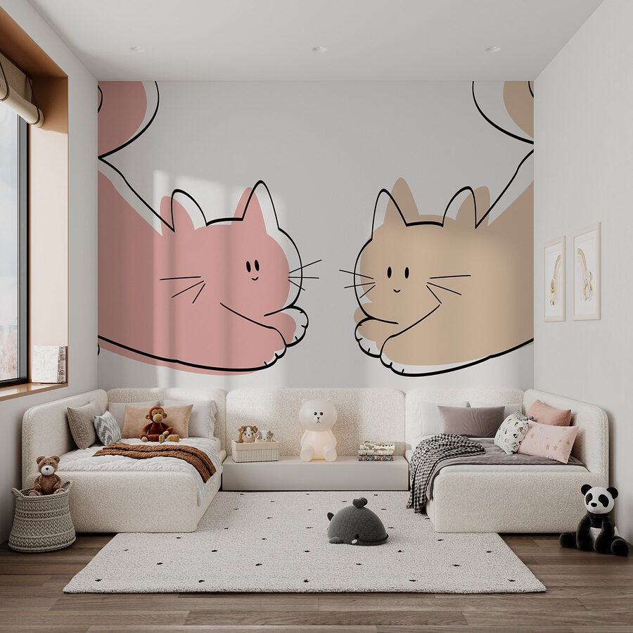 Premeňte svoj priestor pomocou tejto nádhernej nástennej maľby s dvojicou útulných mačiek, ktoré si len tak odpočívajú. Sú to kamaráti, ktorých by ste si priali mať pri sebe počas lenivého nedeľného popoludnia. Predstavte si to v detskej izbe alebo v hravom kútiku doma – okamžitý úsmev zaručený! Jemné farby a rozmarný dizajn vzbudzujú pocity tepla a pohodlia, takže je ťažké sa na ne nepozrieť. Je ideálny na dodanie kúzla bez toho, aby zahltil atmosféru. Kto by nemal rád každodennú pripomienku týchto rozkošných chlpatých guličiek? Len si predstavte príbehy, ktoré by mohli ožiť s týmito rozmarnými mačičkami!