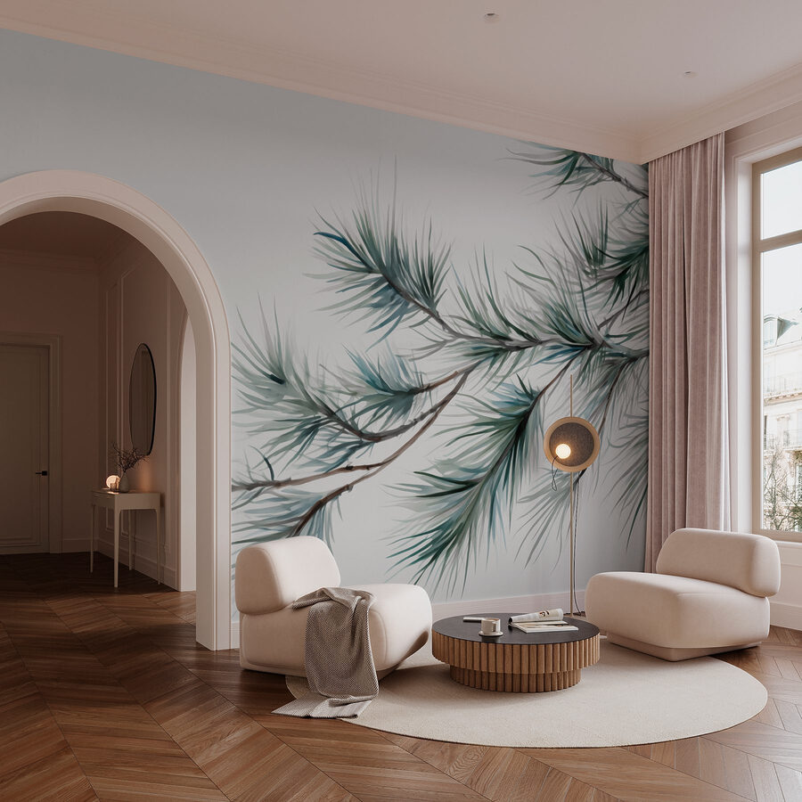 Premeňte miestnosť pomocou nástennej maľby “Jemné borovicové vetvy v jemných odtieňoch”. Predstavte si, že sa prebúdzate s jemným dotykom prírody, kde každé mäkké borovicové ihličie tancuje na stene ako šepot z lesa. Zahalí váš priestor do pokojných vibrácií a dodá mu závan čerstvého vzduchu, ideálny do útulného čitateľského kútika alebo možno do obývačky, kde sa vedú rozhovory. Tlmené farby nabádajú k pocitu pokoja – takmer ako na pokojnej prechádzke v lese bez toho, aby ste museli opustiť domov. Je to očarujúci dotyk, ktorý pôsobí nenáročne, ale zároveň robí výrazný dojem. Čo si nezamilovať?
