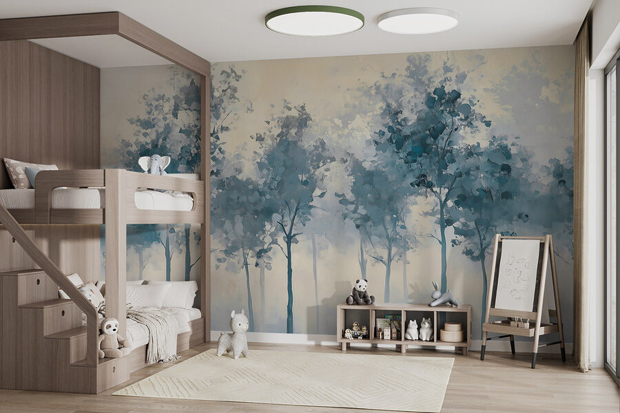 Predstavte si pokojný les, v ktorom stoja vysoké stromy ticho zahalené v hmle. Táto nástenná maľba “Skupina stromov v hmle” dokonale zachytáva tento čarovný okamih. Jemná modrá a nežná zelená sa plynule prelínajú a vytvárajú zasnené pozadie, ktoré upokojuje dušu. Je to ako preniesť si kúsok prírody do interiéru bez potreby zalievania. Predstavte si ho v útulnom čitateľskom kútiku, kam sa dá uniknúť s knihou a šálkou teplého čaju. Každý pohľad pôsobí ako pokojné útočisko, ktoré premení akýkoľvek priestor na upokojujúce útočisko – nie sú potrebné turistické topánky. Ideálny pre milovníkov prírody alebo pre každého, kto chce mať doma trochu pokoja.