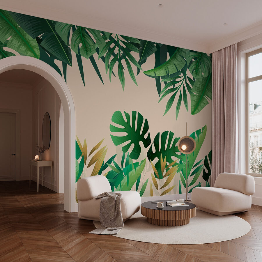 Premeňte akúkoľvek miestnosť na tropický únik s touto žiarivou nástennou maľbou zelených listov. Predstavte si, že vojdete dnu a budete mať pocit, že ste vstúpili do sviežeho dažďového pralesa – príroda čistí vzduch priamo u vás doma. Sýta zeleň a hravé vzory sú ako závan čerstvého vzduchu, vďaka ktorému sa aj malý priestor stane otvoreným a živým. Ideálne sa hodí do útulného čitateľského kútika alebo na veselú kuchynskú stenu, je to to pravé, čo rozprúdi konverzáciu. Priatelia sa budú čudovať, že dobrodružstvo v džungli je hneď za rohom. Kto potrebuje dovolenku, keď má toto?