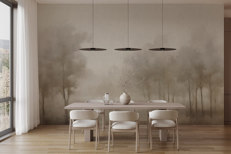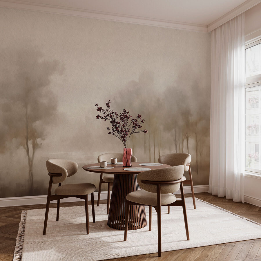 Premeňte každú miestnosť pomocou tejto zasnenej nástennej maľby s hmlistou krajinou so stromami. Predstavte si, že sa zobudíte a máte pocit, že ste vstúpili do pokojného hmlistého rána priamo vo svojom vlastnom priestore, kde jemne šepká krása prírody. Jemné odtiene sú ideálne na navodenie pokojných vibrácií, či už ide o útulnú spálňu alebo živý obývací priestor. Je to ako preniesť pokojný les dovnútra bez hmyzu a potreby turistických topánok! Táto nástenná maľba je ideálna pre milovníkov prírody alebo pre všetkých, ktorí sa naháňajú za pokojným únikom, a očarí pri každom pohľade. Urobte si pohodlie a nechajte hmlistú scenériu obklopiť váš domov ako hrejivé objatie.