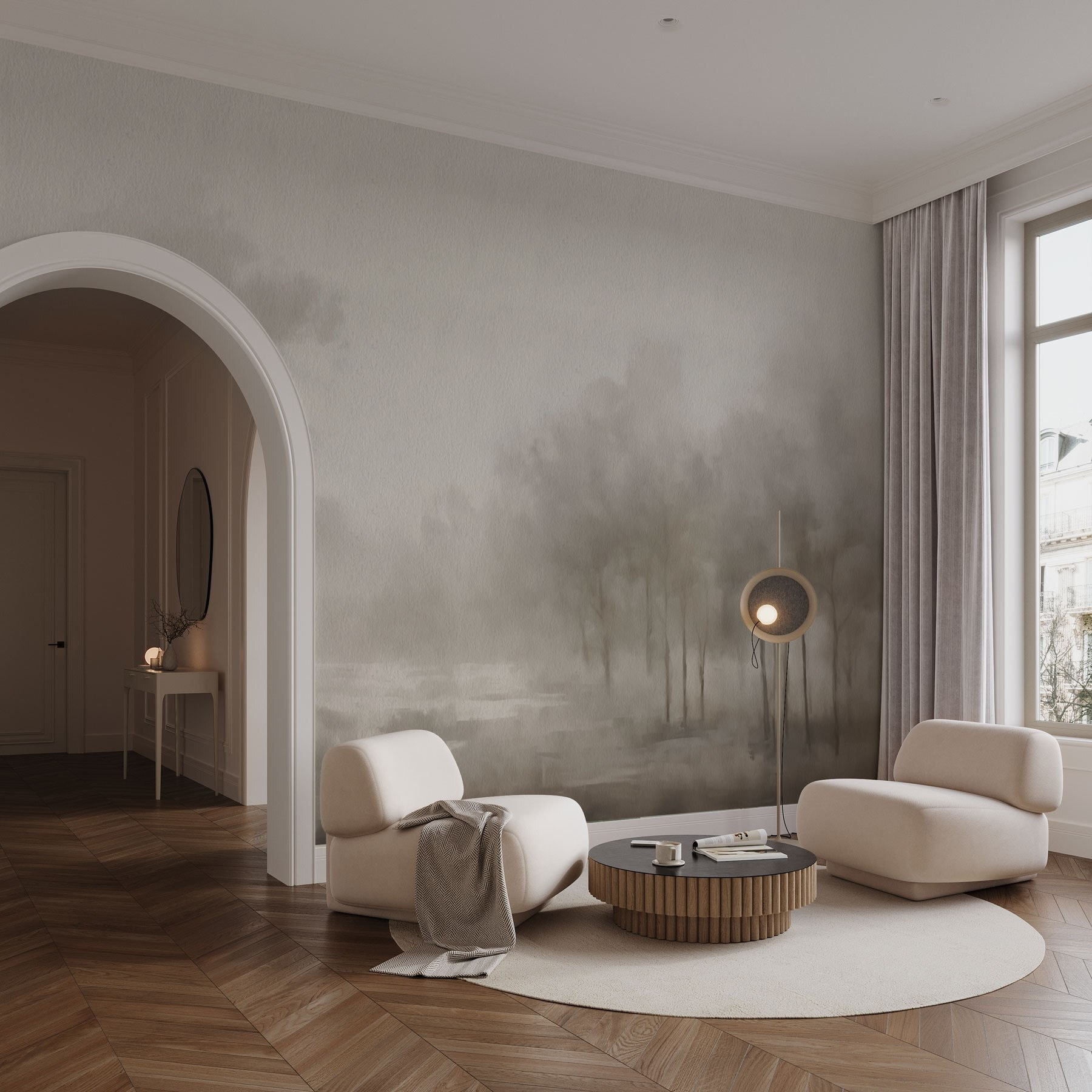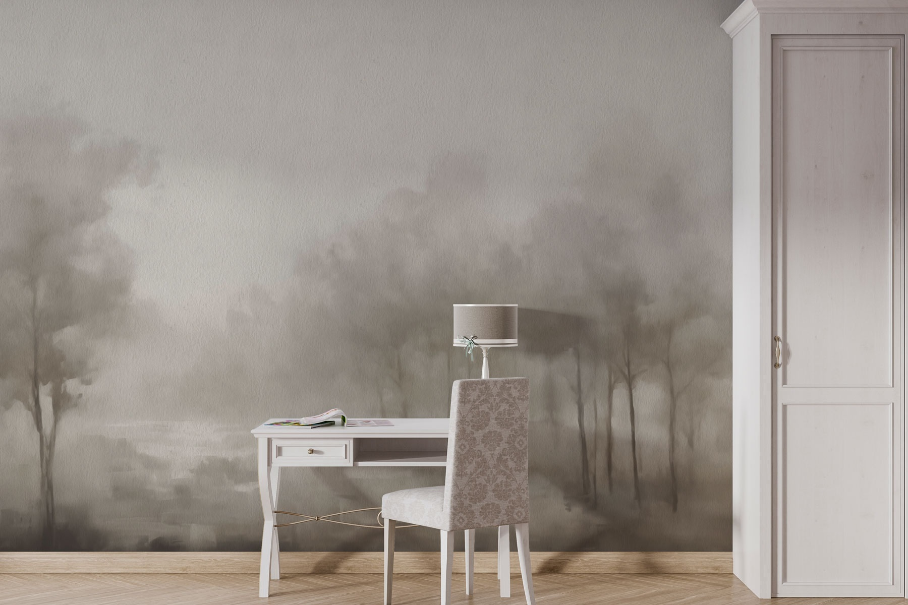 Premeňte svoj priestor na zasnený únik s touto nástennou maľbou “Hmlistá krajina so stromami”. Predstavte si, že sa zobudíte na jemnú hmlu, ktorá sa valí cez pokojné stromy – ako jemné objatie od prírody. Je ideálna do obývacej izby alebo spálne a prináša upokojujúcu atmosféru, vďaka ktorej sa budete chcieť na dlhé hodiny schúliť s knihou (a možno aj so šálkou čaju). Tlmené tóny sa bez námahy prelínajú a vyzývajú k teplu bez toho, aby kričali o pozornosť. Len si to predstavte: popoludnia strávené snívaním pri vychutnávaní pokojnej atmosféry, ktorú táto nástenná maľba vytvára. Je to malý kúsok pokoja priamo u vás doma, ktorý vás privíta, aby ste si oddýchli a relaxovali vo veľkom štýle.