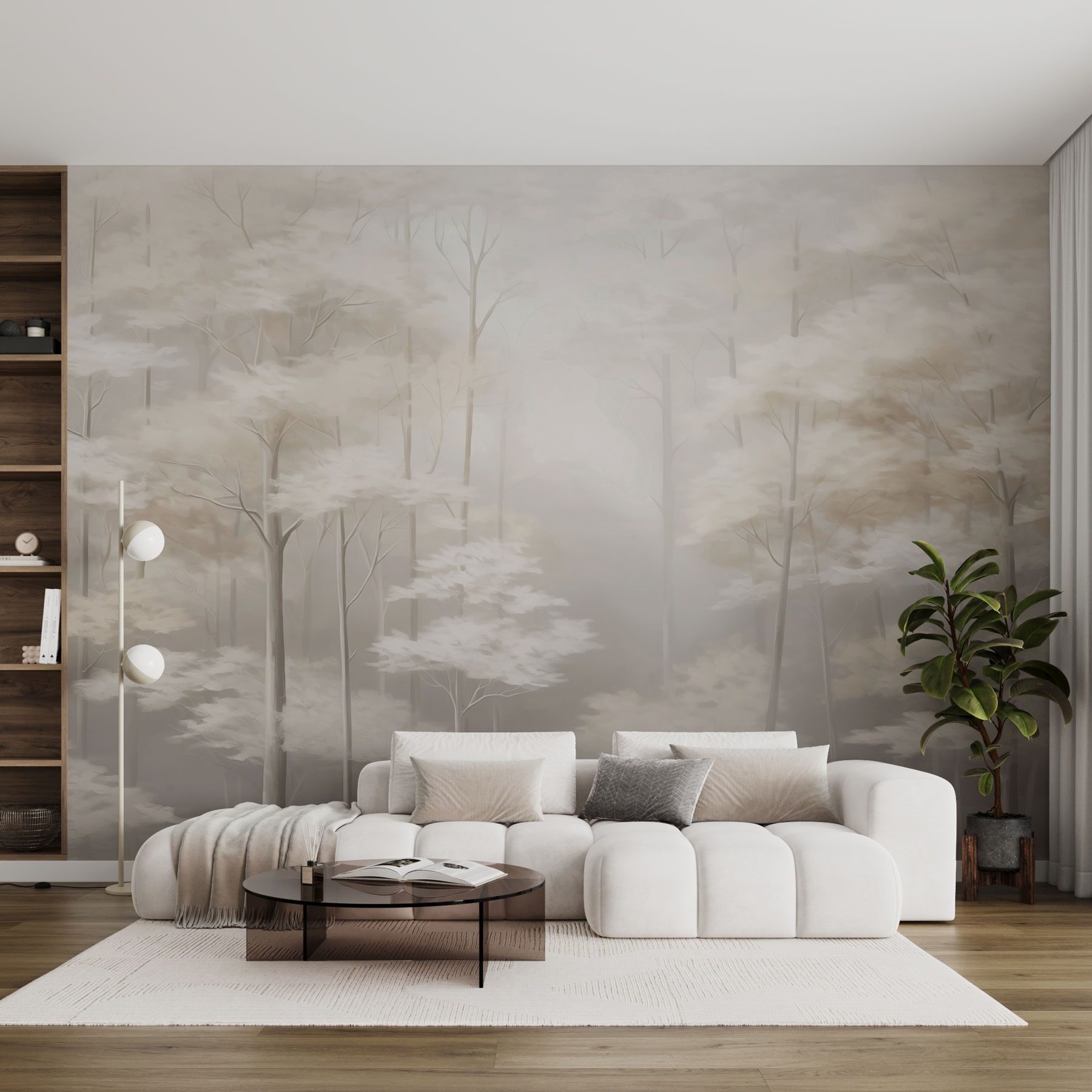 Predstavte si, že vstúpite do zasneného hmlistého lesa, kde vás jemné tóny a nežné stromy pozývajú na potulky. Táto nástenná maľba je ako závan čerstvého vzduchu pre váš priestor – dokonalé spojenie pokoja prírody a moderného umenia. Predstavte si príjemné večery strávené v miestnosti premenenej touto pokojnou kulisou. Nie je to len nástenná maľba, je to nálada. Či už popíjate kávu alebo pracujete na svojom najnovšom projekte, táto upokojujúca scéna sľubuje upokojenie mysle a vzbudenie inšpirácie. Navyše je to skvelý začiatok konverzácie pre všetkých vašich hostí. Kto by sa rád nerozprával o krásach prírody z pohodlia domova?