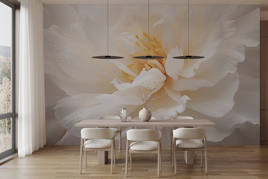 Premeňte akúkoľvek miestnosť pomocou “Jemných okvetných lístkov s jemnými kvapkami rosy”. Táto nástenná maľba zachytáva krásu pivoniek, ktorých jemné okvetné lístky sa lesknú, akoby ich práve pobozkala ranná rosa. Predstavte si, ako sedíte v útulnom kútiku, popíjate čaj a cítite sa ako v pokojnej záhrade. Je to viac než len dekorácia – je to nádherný únik od zhonu. Táto nástenná maľba svojou upokojujúcou esenciou pozýva k pokoju priamo do vášho priestoru. Či už je to obývacia izba alebo útulný kútik, prináša závan čerstvého vzduchu a mení steny na zážitok. Ideálna pre tých, ktorí oceňujú jemný dotyk prírody!