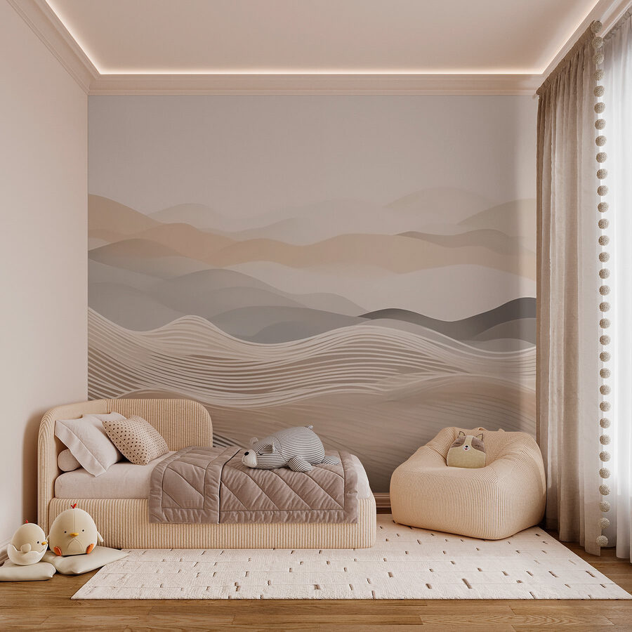 Premeňte akúkoľvek stenu na útulné útočisko pomocou tejto nástennej maľby zobrazujúcej jemné kopce v mäkkých vlnách bielej a hnedej farby. Je to ako preniesť kúsok prírody priamo do srdca vášho domova. Predstavte si, že sa pri pohľade na tieto upokojujúce krivky schúlite do klbka s dobrou knihou alebo len tak popíjate kávu. Zdá sa, že sa takmer vlnia ako pokojné more – ideálne na vytvorenie pokojnej atmosféry. Jemné tóny tejto nástennej maľby sa nádherne kombinujú s akýmkoľvek interiérom, takže je fantastickým pozadím pre vaše dobrodružstvá v interiérovom dizajne. Všetko je to o hľadaní rovnováhy medzi pohodlím a štýlom, nemyslíte? Dodajte svojmu priestoru nádych pokoja; veď kto by nechcel, aby sa jeho domov cítil ako v teplom objatí?