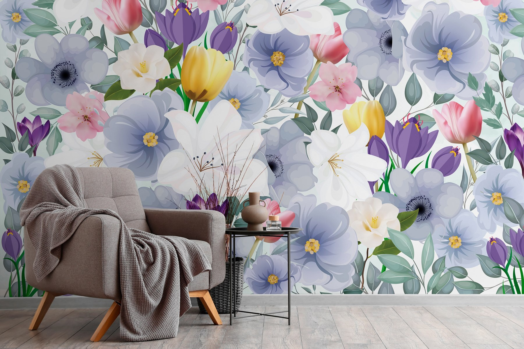 Či už je to v útulnej obývačke, živej kuchyni, alebo dokonca zasnenej spálni, tento dizajn vyzýva na teplo a pocit pokoja. Predstavte si, ako sa krútite s dobrou knihou, obklopení týmito očarujúcimi kvetmi, a jednoducho sa cítite šťastní. Je to malý kúsok prírody, ktorý premení steny na veselé pozadie, ideálne pre tých, ktorí ocenia vo svojom priestore niečo výnimočné.