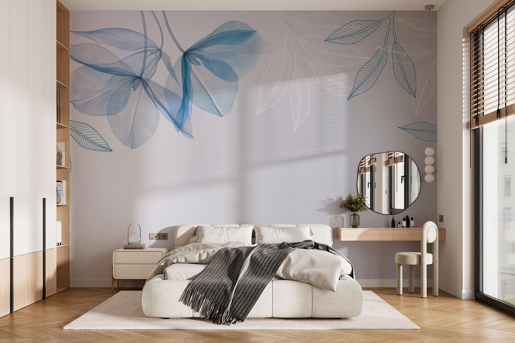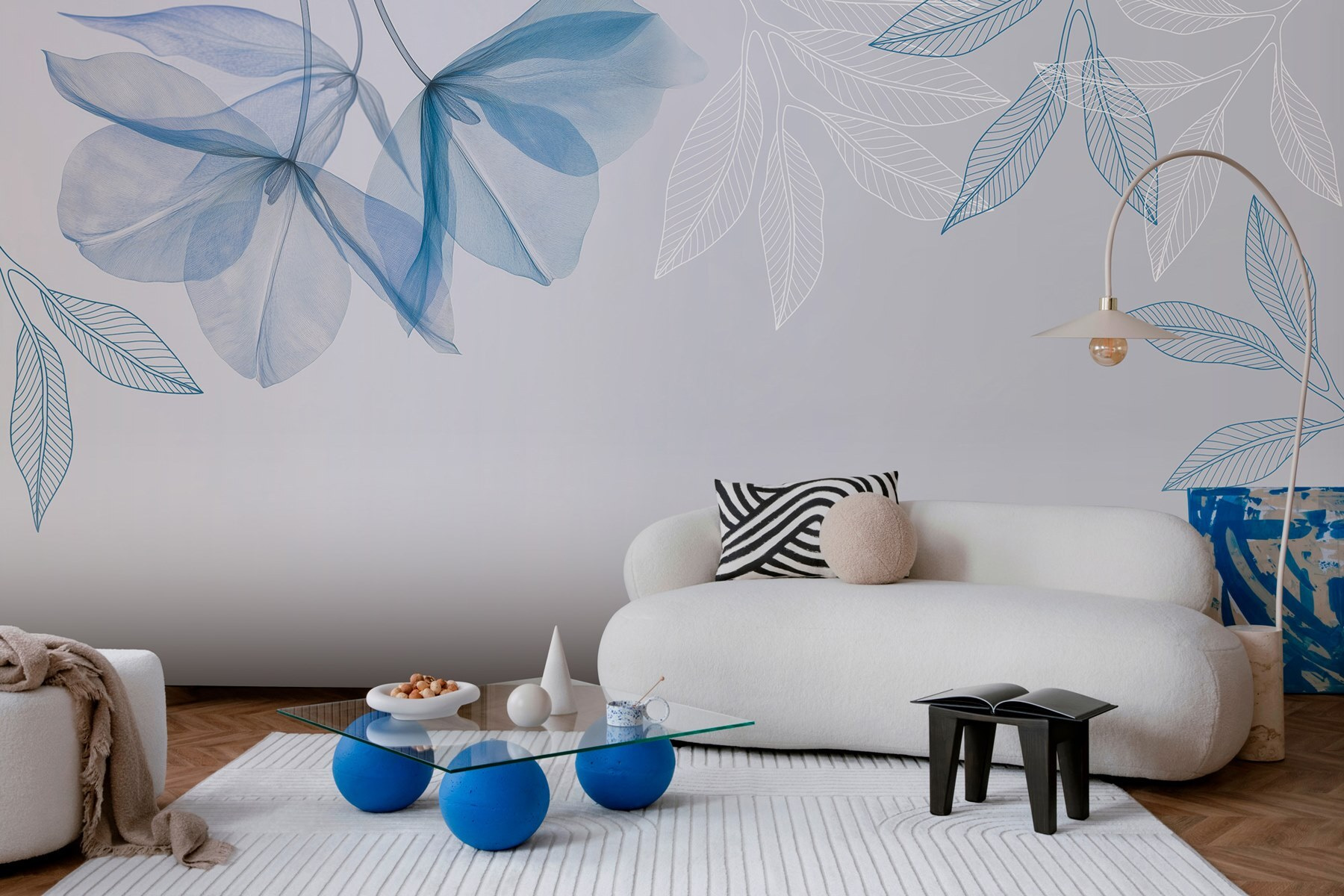 Premeňte obyčajnú stenu na pokojné útočisko pomocou tejto nástennej maľby s modrými a bielymi listami. Je to ako pozvať do interiéru jemný vánok, ktorý šepká tajomstvá veľkej prírody. Predstavte si útulné zákutie, šálku čaju v pare a túto fototapetu, ktorá navodzuje dokonalú náladu – nie je to priam snové?