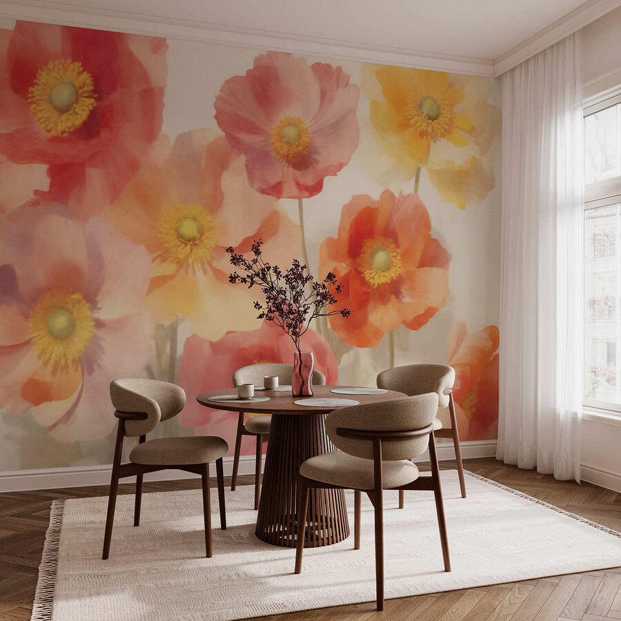 Premeňte svoj priestor pomocou tejto úžasnej nástennej maľby s veselou kyticou kvetov na sviežom bielom pozadí. Je to ako preniesť záhradu do interiéru bez skutočnej hliny – bonus! Každý kvet akoby tancoval farbami a spájal jemné odtiene do nádherného akvarelového majstrovského diela. Predstavte si, že sa zobudíte s týmto výhľadom a vaša ranná káva sa bude cítiť o niečo výnimočnejšie. Je ideálny na oživenie nudného kúta alebo na vytvorenie výrazu vo vašej obývačke. Táto nástenná maľba vyvoláva teplo a radosť, bez námahy pozdvihuje náladu a vyvoláva úsmevy. Možno vás inšpiruje k tomu, aby ste vzali do ruky štetec – alebo aspoň jednu či dve kvety!