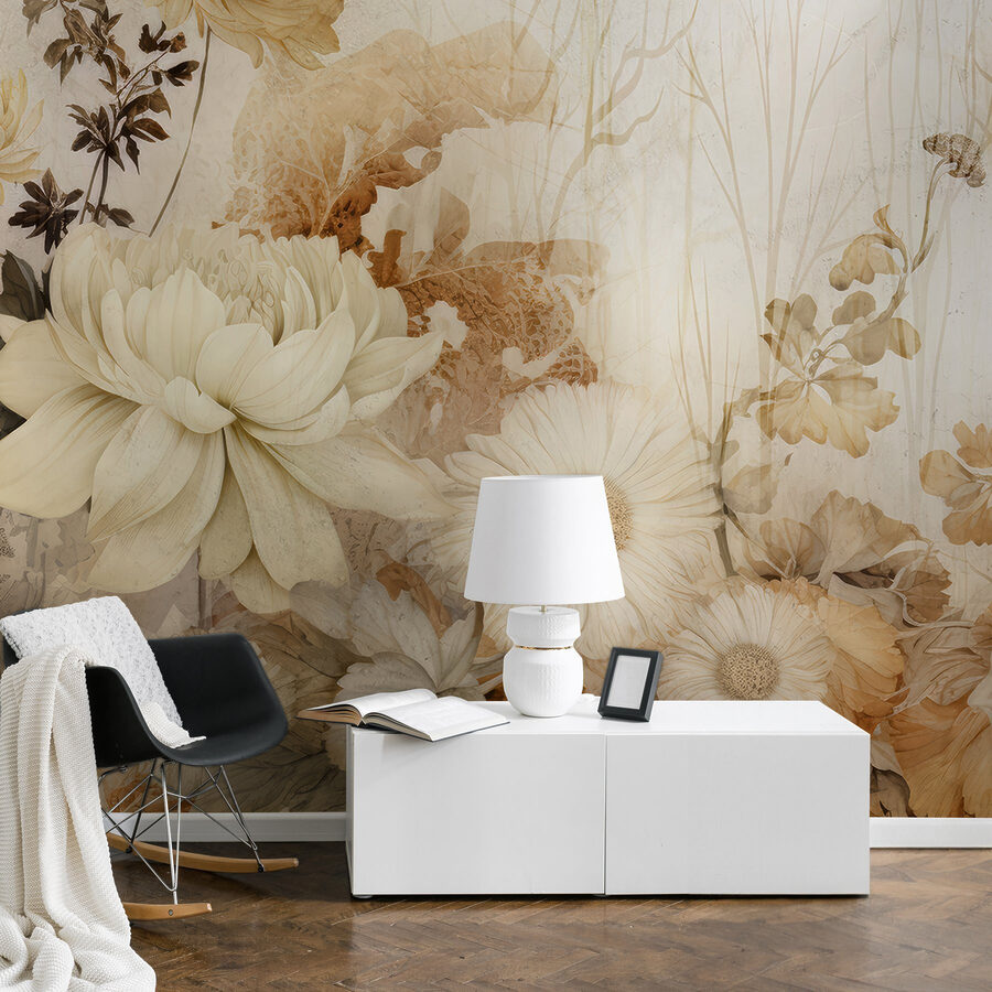 Premeňte svoj priestor pomocou očarujúcej nástennej maľby “Jemná krása v tlmených tónoch”. Predstavte si, že vstúpite do pokojnej záhrady, kde jemné okvetné lístky šepkajú svoje tajomstvá. Táto nástenná maľba nie je len kusom dekorácie, je to jemné objatie elegancie prírody. Tlmené kvetinové tóny vytvárajú upokojujúcu atmosféru, ktorá je ideálna pre útulný kútik na čítanie alebo inšpiratívny pracovný priestor. Predstavte si, ako sa krútite s dobrou knihou, obklopujú vás pokojné kvety a poskytujú vám chvíľu zenu v dnešnom chaotickom svete. Je to ako priniesť kúsok pokoja do interiéru – jemná pripomienka, aby ste sa zastavili a ocenili krásu každodenného života. Tak prečo nedovoliť týmto krásnym kvetom vniesť do vášho domova trochu tepla a šarmu?