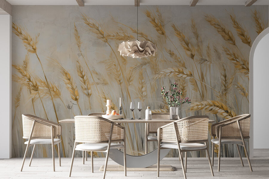 Premeňte svoj priestor pomocou úžasnej nástennej maľby, ktorá zachytáva pšeničné pole jemne sa kolísajúce vo vetre. Tento kúsok dodáva nádych krásy prírody a vnáša do každej miestnosti hrejivú, zemitú atmosféru. Predstavte si, ako popíjate rannú kávu a máte pocit, že stojíte na nekonečnom zlatom poli a slnko vás bozkáva na líca. Je to ten druh nástennej maľby, vďaka ktorej sa steny cítia ako živé a vyvolávajú sny o piknikoch a lenivých popoludniach. Táto nástenná maľba, ktorá je ideálna do útulnej obývačky alebo pokojnej spálne, navodzuje pocit pokoja a radosti a každému pripomína, že príroda je vzdialená len na jeden pohľad.