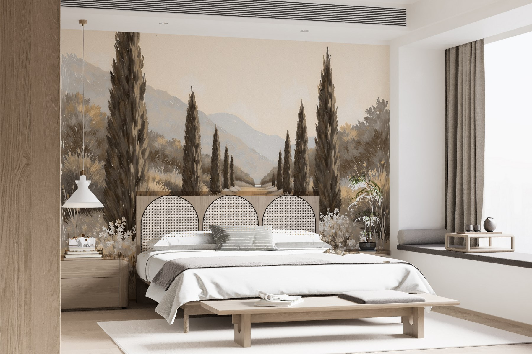 Premeňte svoj priestor na pokojné útočisko pomocou tejto očarujúcej nástennej maľby s pokojnou krajinou vysokých stromov a jemných kvetov. Je to ako vstúpiť do zasnenej prírodnej scény priamo z vašej obývačky. Predstavte si, ako popíjate čaj pri pohľade na tú krásnu cestičku lemovanú veselými kvetmi – okamžitý pokoj! Zemité tóny vytvárajú hrejivú atmosféru a bez námahy sa začlenia do akéhokoľvek interiéru. Ideálne pre tých, ktorí chcú dotyk prírody bez toho, aby museli opustiť domov. Len si predstavte, aké rozhovory môže táto nástenná maľba vyvolať; môže dokonca inšpirovať sny o dlhých, lenivých prechádzkach po slnkom zaliatej záhrade. Perfektný výber na vnesenie trochy pokoja a charakteru do každej miestnosti!