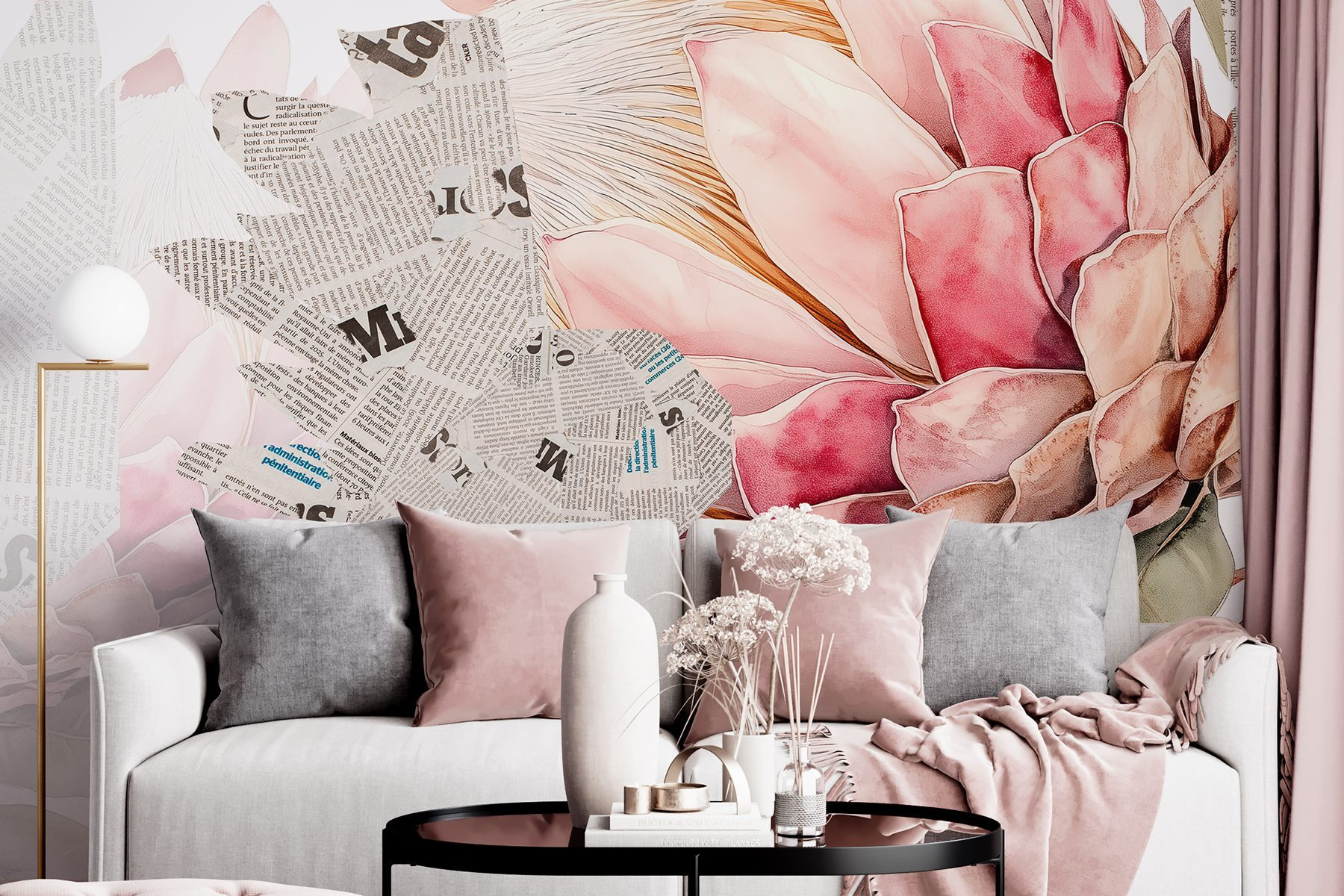 Premeňte svoj priestor pomocou tejto rozmarnej nástennej maľby, jemného tanca žiarivých kvetov a útržkov novín. Predstavte si, že vstúpite do miestnosti, kde sa stretáva príroda a mestský život – každý okvetný lístok hýri farbami, zatiaľ čo novinový papier jemne šepká príbehy o svete. Je to ako mať záhradu, ktorá nikdy nezvädne, priamo na stene! Táto nástenná maľba, ktorá je ideálna pre tento útulný čitateľský kútik alebo živú jedáleň, prináša nádych hravosti. Vyzýva k zvedavosti, vyvoláva rozhovory, keď hostia žasnú nad jej jedinečným čarom. Kto by povedal, že dekorácia môže pôsobiť ako hrejivé objatie? Ponorte sa do tejto zmesi krásy a kreativity a nechajte svoje steny rozprávať príbeh!