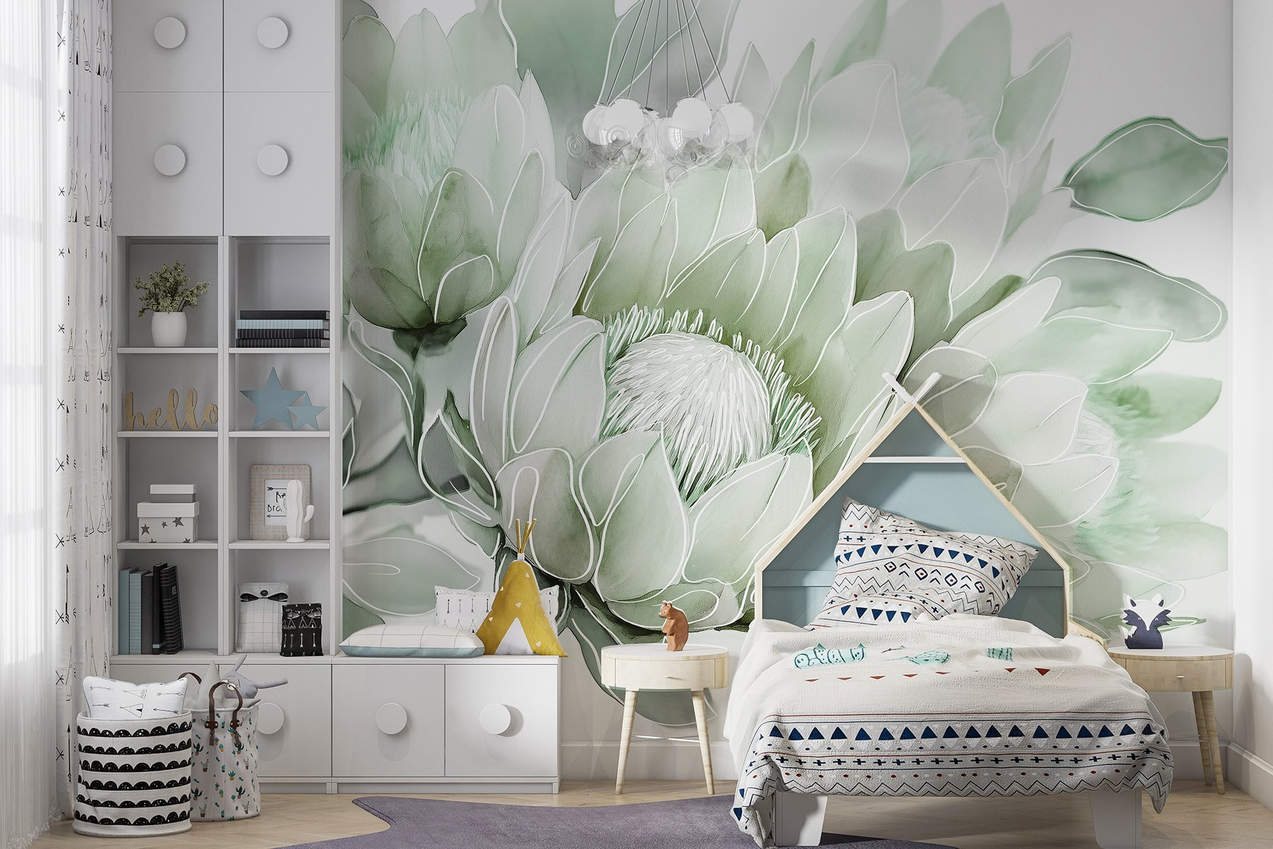 Premeňte akúkoľvek miestnosť na pokojný únik s nástennou maľbou “Jemné kvety v jemných pastelových farbách”. Predstavte si, že sa prebúdzate do jemného rozkvetu upokojujúcich farieb, ktoré prinášajú zasnenú atmosféru záhrady priamo na vaše steny. Je to ako závan čerstvého vzduchu – žiadne alergie, sľubujeme! Či už ide o obývaciu izbu alebo útulný čitateľský kútik, táto nástenná maľba sa ladne kolíše jemnými okvetnými lístkami a pozýva do tepla a pokoja. Predstavte si, ako popíjate čaj a obdivujete jemnú krásu, ktorá vás obklopuje. Nie je to len dekorácia, je to zážitok, každodenná pripomienka, že umelecké dielo prírody je vzdialené len na jeden pohľad. Ideálny pre tých, ktorí ocenia štipku elegancie zmiešanej so šepotom rozmarnosti.