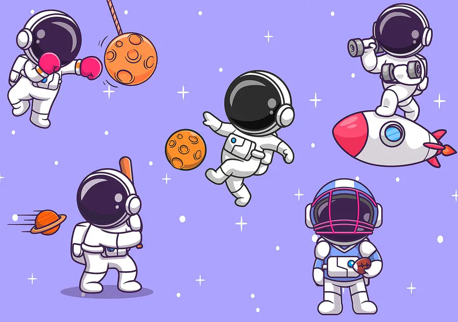 Predstavte si, že vstúpite do miestnosti, kde astronauti usporadúvajú vesmírnu párty – znie to zábavne, však? Táto nástenná maľba zachytáva túto hravú atmosféru s kreslenými astronautmi, ktorí poskakujú vo vesmíre a venujú sa rôznym činnostiam, od boxovania s mesačnými kameňmi až po približovanie na raketách. Je to ako živý príbeh odohrávajúci sa na vašej stene, ideálny pre deti alebo mladých srdcom. Predstavte si, ako sa vážne chvíle každodenného života rozjasnia, keď zahliadnete týchto bizarných vesmírnych bádateľov, ktorí vám pripomenú, aby ste prijali radosť a dobrodružstvo. Kto by nechcel mať kúsok vesmíru pokropený šťastím? Premeňte obyčajný priestor na nápaditý únik, kde sny lietajú!