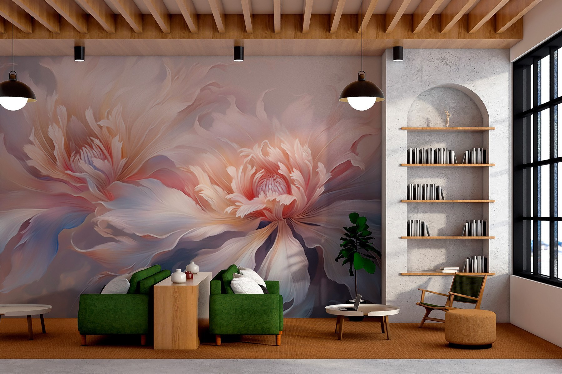 Predstavte si, že vstúpite do pokojného sveta plného jemných kvetov, kde jemné odtiene koketujú so stenami. Táto nástenná maľba prináša do interiéru jemný šepot prírody. Každý okvetný lístok akoby tancoval a vyzýval k pokojným vibráciám, ktoré dokážu rozjasniť aj tie najnudnejšie kúty.