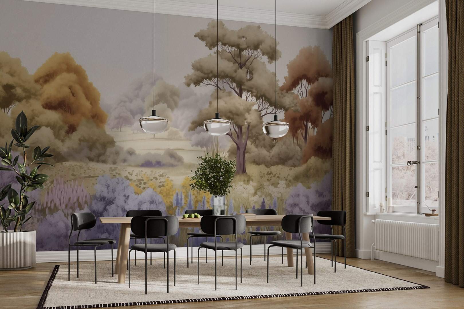 Premeňte svoj priestor pomocou tejto očarujúcej nástennej maľby, ktorá zobrazuje zasnenú krajinu plnú stromov a rozkvitnutých kvetov. Predstavte si, že pri každom pohľade vstúpite do pokojnej záhrady. Jemné farby navodzujú jemný pokoj, ideálny na relaxáciu po dlhom dni. Predstavte si niekoho, kto popíja čaj, pričom pozadie tvorí nástenná maľba, ktorá okamžite pozdvihne útulnú atmosféru. Je to ako preniesť si kúsok prírody do interiéru, bez otravných včiel! Či už v spálni, obývačke, alebo dokonca v kreatívnom kútiku, táto nástenná maľba bez námahy vyvoláva radosť a pozýva k pokoju, vďaka čomu sa každý okamih cíti o niečo výnimočnejší. Kto by sa nechcel kochať v takejto kráse?