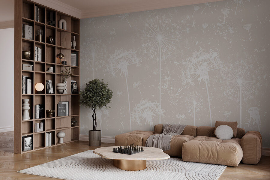 Predstavte si to: pokojný priestor premenený jemnou krásou bielych kvetov púpavy. Táto nástenná maľba nie je len dekoráciou; je akoby priniesla do interiéru jemný vánok, ktorý šepká príbehy o ľahkosti a snoch. S týmito jemnými kvetmi umiestnenými na teplom pozadí je každý pohľad ako malý únik do prírody.