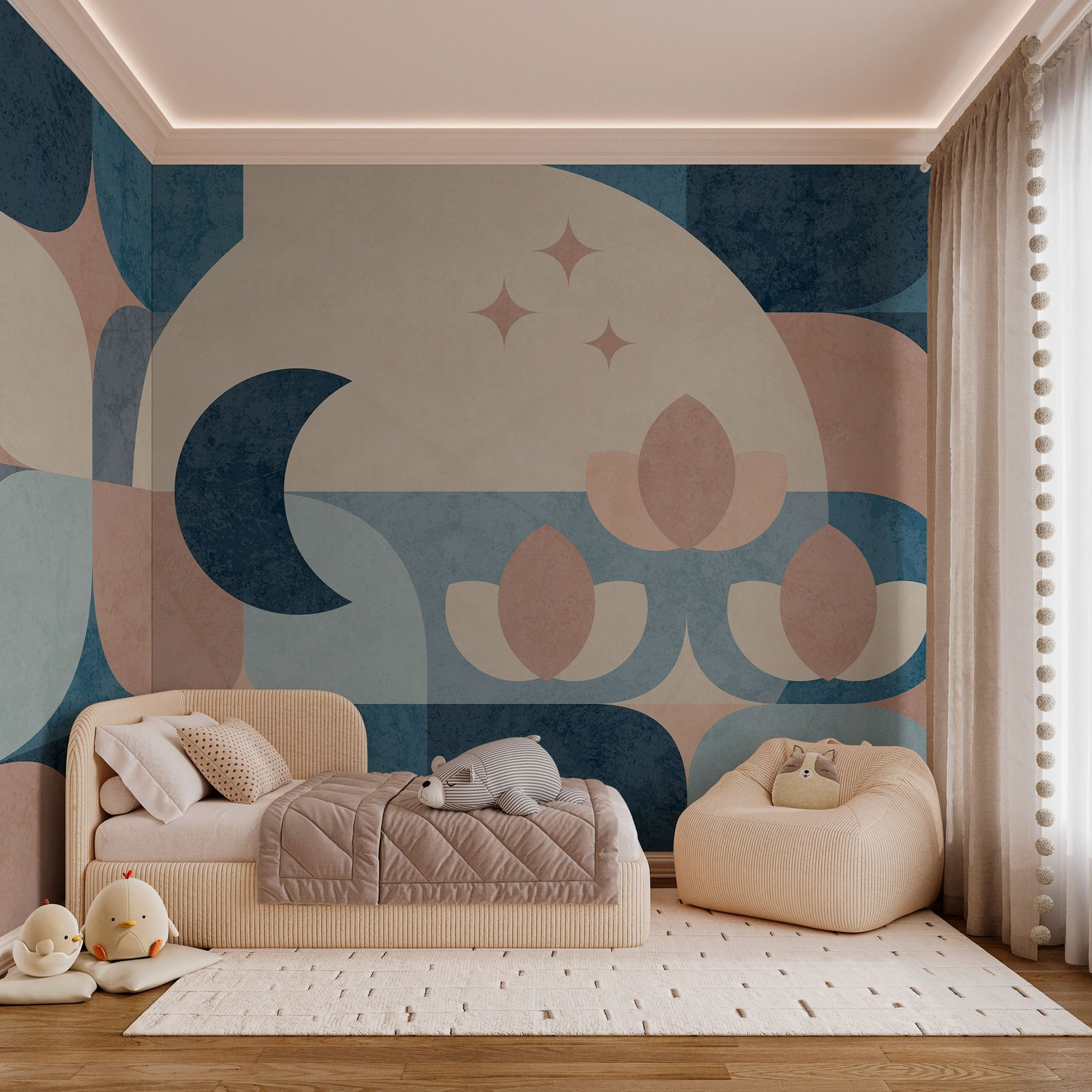 S touto úžasnou modro-ružovou geometrickou fototapetou premeníte každú stenu na miesto, kde sa bude dať rozprávať. Je ako útulné objatie pre vašu izbu – odvážna, ale upokojujúca, s tvarmi, ktoré tancujú po povrchu. Predstavte si, že popíjate kávu a strácate sa v jeho pokojnej atmosfére. Každá krivka a uhol vyzývajú oko k putovaniu a podnecujú nápady pre tie kreatívne duše. Tento dizajn je ideálny do obývacej izby, domácej kancelárie alebo dokonca do hravej detskej izby, šepká teplo a zároveň je výrazný. Pridajte trochu šarmu a sledujte, ako váš priestor ožije. Je to nástenné umenie, ktoré je ako zo sna.