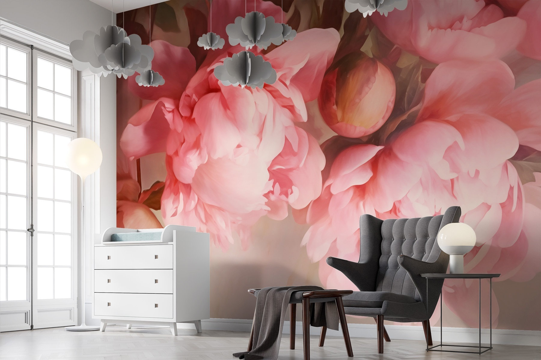 Premeňte akúkoľvek miestnosť na rozkvitnutý raj pomocou tejto úžasnej nástennej maľby so skupinou ružových kvetov. Predstavte si, že vstúpite do priestoru, v ktorom sa budete cítiť ako na záhradnej párty – je živý, veselý a trochu zasnený. Jemné ružové odtiene vnášajú teplo a radosť, takže je ideálna pre útulný obývací priestor alebo pokojné útočisko v spálni.