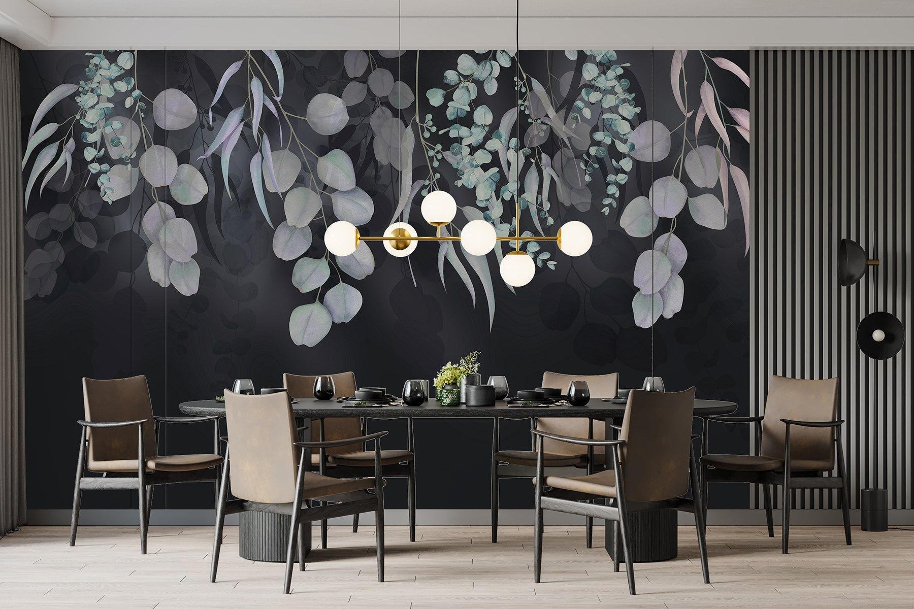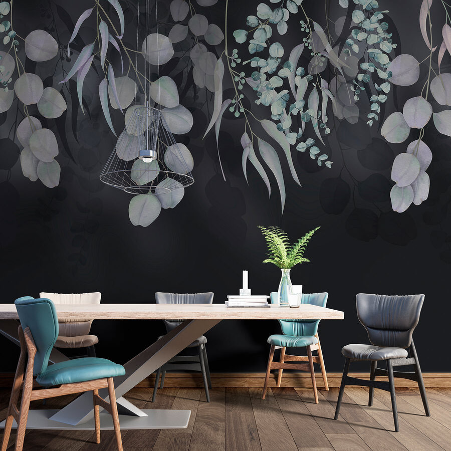 Premeňte svoj priestor pomocou tejto očarujúcej nástennej maľby “Jemné listy na tmavom pozadí”. Predstavte si, že vstúpite do pokojnej záhrady, kde sa listy jemne kolíšu pod jemne osvetlenou oblohou. Táto fototapeta prináša tento pocit do interiéru, kde sa mieša zemitá zelená a tlmená modrá na sýtom tmavom plátne. Pridáva hĺbku a tajomstvo, ako šepot prírody, ktorý vás víta doma. Je ideálna pre útulné kúty alebo výrazné steny, vyzýva k jemným vibráciám a premysleným rozhovorom, čím premení každú miestnosť na pokojné útočisko. Kto by to bol povedal, že zdobenie môže pôsobiť tak ľahko upokojujúco?