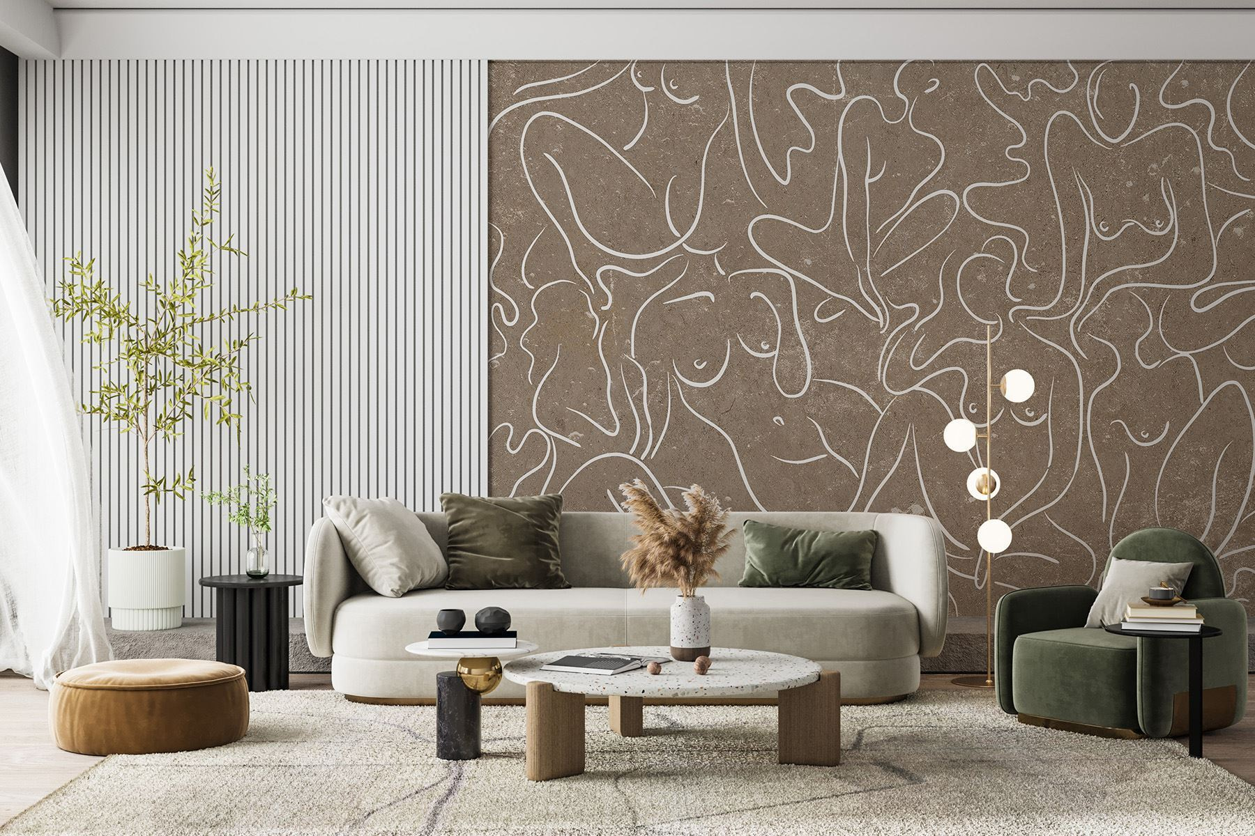 Zoznámte sa s nástennou maľbou “Skupina ženských postáv”, ktorá je hravým a zároveň sofistikovaným doplnkom každého priestoru. Predstavte si to: popíjate kávu vo svojej obývačke a tieto pôvabné, plynulé obrysy nabádajú k uvoľnenej atmosfére, ktorá podnecuje nielen zvedavosť, ale aj rozhovor. Teplé, zemité tóny dokonale vyvažujú pôvabné línie – je to ako relaxačný deň v galérii umenia, ale bez vstupného.