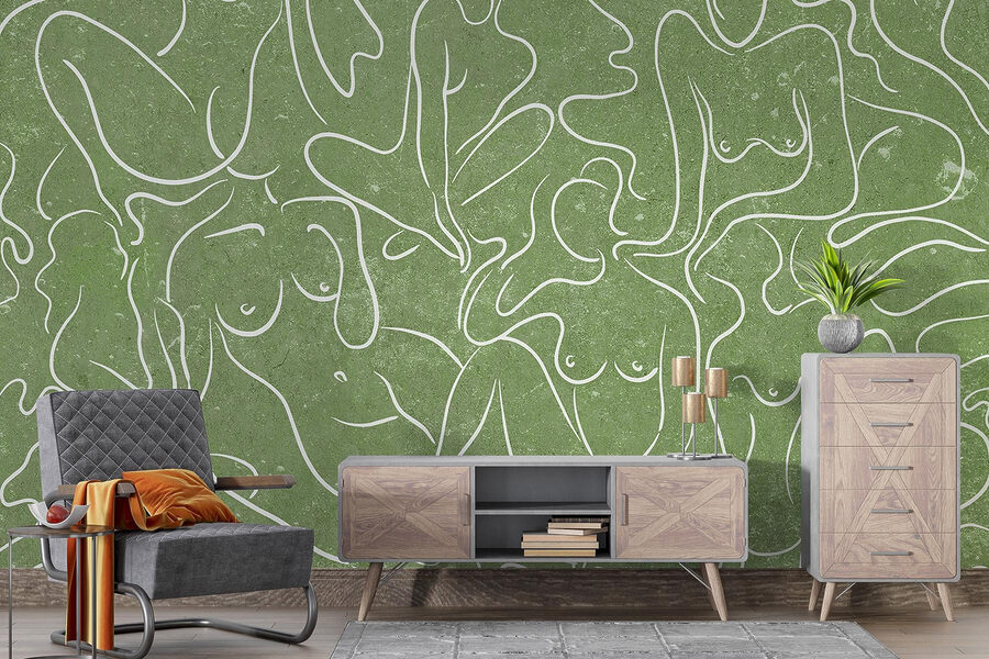 Predstavujeme vám nástennú maľbu, ktorá je ako hrejivé objatie pre akýkoľvek priestor – predstavte si útulný kút premenený pôvabnými obrysmi žien, ktoré sa jemne vlnia na mäkkom zelenom pozadí. Toto nie je len dekorácia, ale aj zlepšovák nálady! Predstavte si, ako popíjate čaj, ponorení do myšlienok, pretože tieto plynúce postavy inšpirujú k tvorivosti a spojeniu. Priatelia sa budú rozprávať o kráse a jednoduchosti toho všetkého, zatiaľ čo vy sa budete tajne tešiť z komplimentov. Perfektne sa hodí do obývačky alebo pokojnej spálne, vtiahne vás svojím jemným šarmom a umeleckou atmosférou. Kto by povedal, že nástenné umenie môže pôsobiť tak príťažlivo?