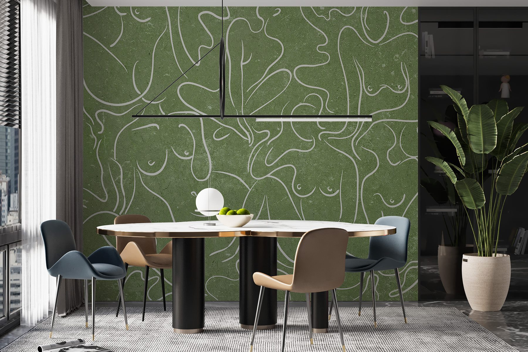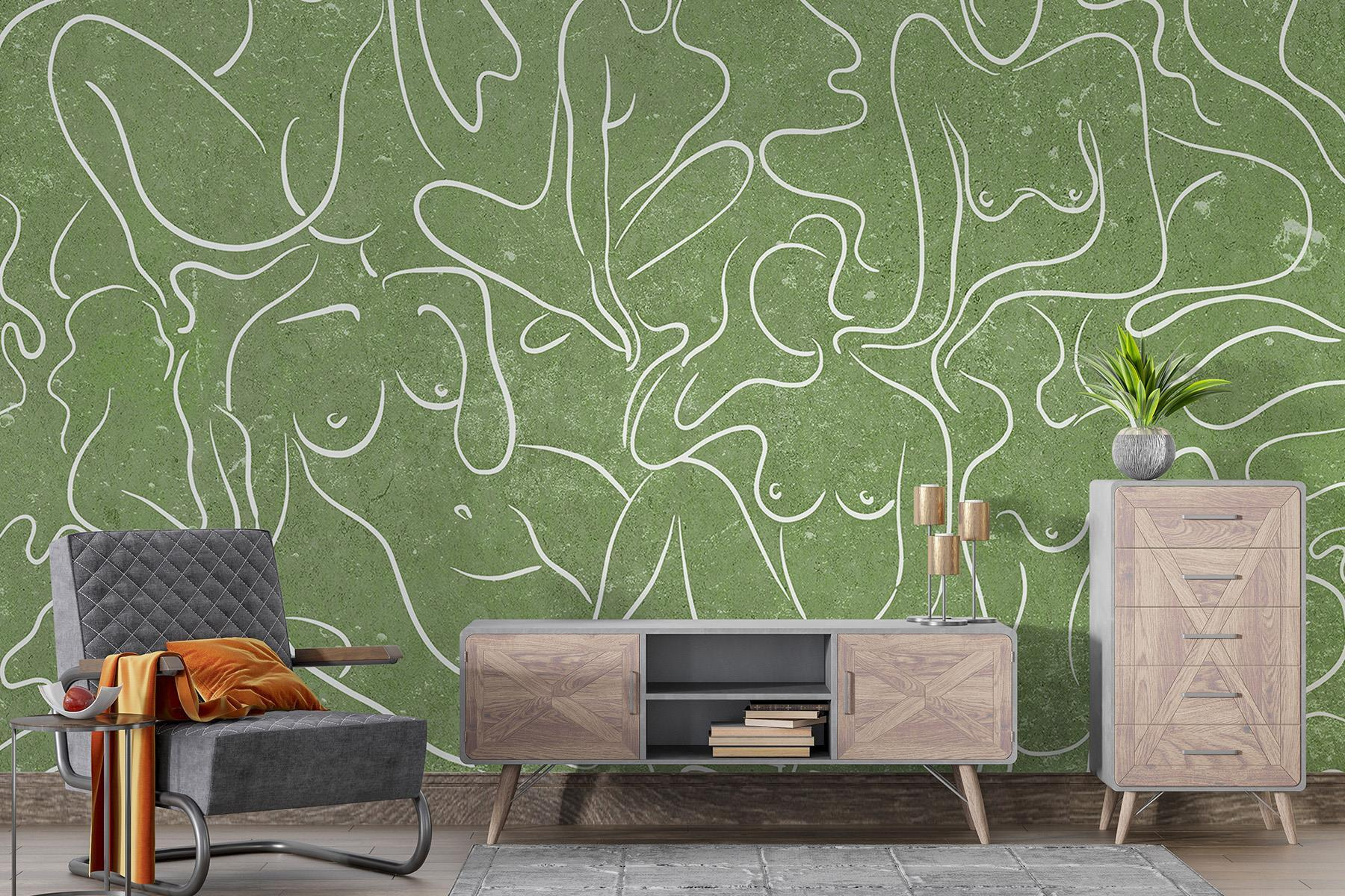 Predstavujeme vám nástennú maľbu, ktorá je ako hrejivé objatie pre akýkoľvek priestor – predstavte si útulný kút premenený pôvabnými obrysmi žien, ktoré sa jemne vlnia na mäkkom zelenom pozadí. Toto nie je len dekorácia, ale aj zlepšovák nálady! Predstavte si, ako popíjate čaj, ponorení do myšlienok, pretože tieto plynúce postavy inšpirujú k tvorivosti a spojeniu. Priatelia sa budú rozprávať o kráse a jednoduchosti toho všetkého, zatiaľ čo vy sa budete tajne tešiť z komplimentov. Perfektne sa hodí do obývačky alebo pokojnej spálne, vtiahne vás svojím jemným šarmom a umeleckou atmosférou. Kto by povedal, že nástenné umenie môže pôsobiť tak príťažlivo?