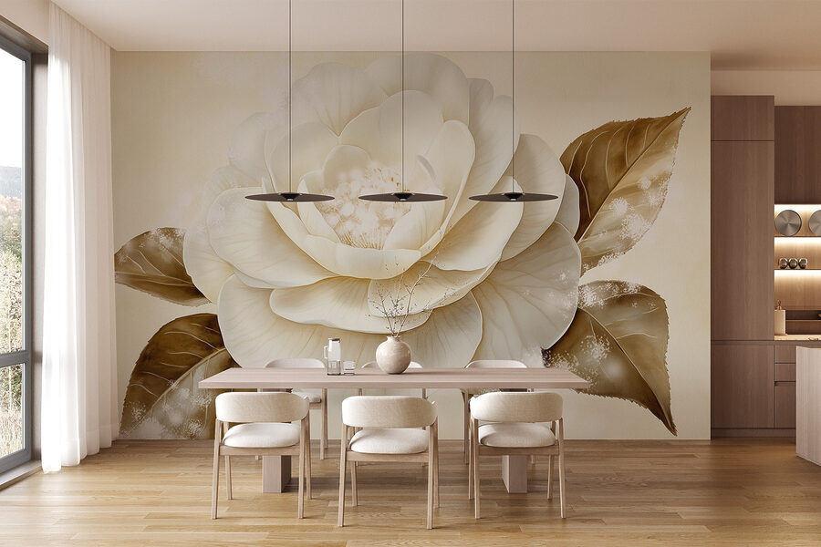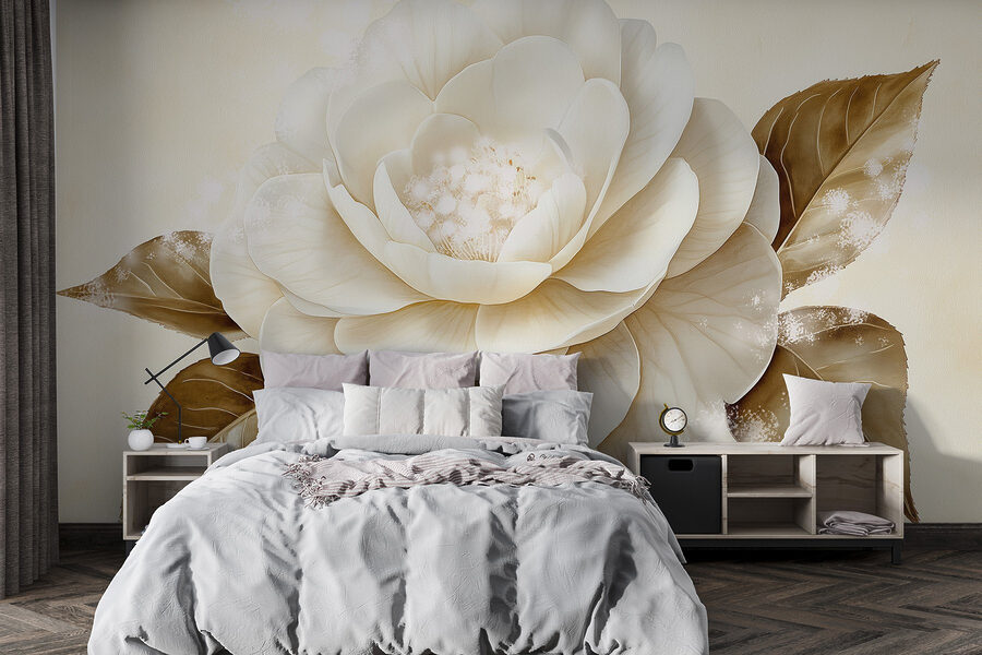 Premeňte svoj priestor pomocou tejto úžasnej nástennej maľby s krásnym bielym kvetom v kombinácii s teplými hnedými listami. Predstavte si, že vstúpite do miestnosti, v ktorej vás privíta toto umelecké dielo a naplní ju pocitom pokoja a pôvabu prírody. Mäkké odtiene a jemné detaily priťahujú pohľad, takže je ideálny do útulnej obývačky alebo pokojnej spálne. Návštevníci sa možno zastavia, aby obdivovali jeho krásu, a možno ich dokonca inšpiruje k odpočinku s dobrou knihou v blízkosti. Je to ako preniesť kúsok vonkajšieho prostredia dovnútra – bez peľu. Jednoduchá zmena, ktorá vyvoláva radosť, nemyslíte?